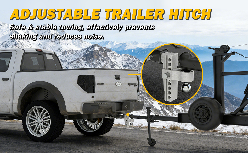 ارتفاع/ارتفاع 8 بوصات قابل للتعديل: تتميز وصلة المقطورة القابلة للتعديل بتركيب قابل للتعديل مقاس 8 بوصات يمكن تعديله بمرونة بزيادات 1 بوصة، وتتكيف تمامًا مع أي ارتفاع للمقطورة وتقلل بشكل فعال من الاهتزاز والصدمات والضوضاء. إنها مريحة وفعالة، مما يلغي الحاجة إلى تغيير وصلات الربط للمركبات المختلفة.