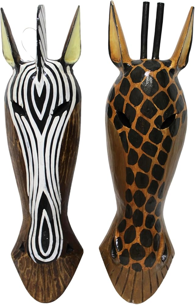 زوج من أقنعة الرأس القبلية المنحوتة يدويًا مقاس 50.8 سم للزرافة والحمار الوحشي