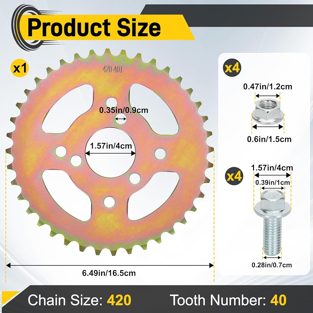 • 【متوافق مع نماذج الدراجات الصغيرة المتعددة】سلسلة خلفية 40T ذات 3 فتحات مناسبة لكولمان B200/B200C/B200R/B200RSV/B200V/BT200X/CT200U/CT200UEX/RB200؛ مناسب لميجا موتو ماكس 212/MMB 212/B212/212MAX؛ مناسب لـrealtree RT200؛ يصلح للمحور M200. يصلح لماسيمو/باجا MB2