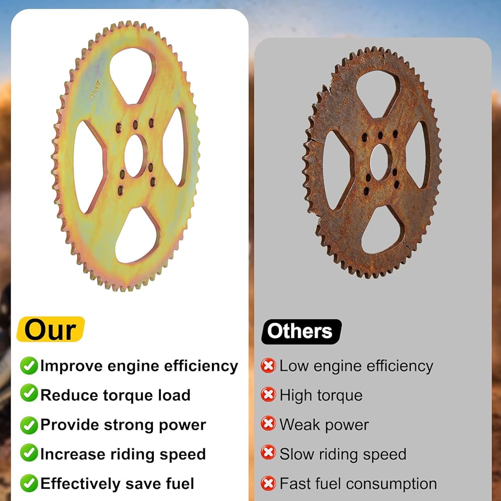 • 【قطع دقيق، نقل سلس وتقليل التآكل】تصميم ضرس 40T ذو 3 فتحات يناسب سلسلة #40/41/420 بشكل مثالي. تضمن الأسنان المقطوعة بدقة نقل الطاقة بسلاسة، وتقليل تآكل السلسلة، وحماية نظام النقل بشكل فعال.