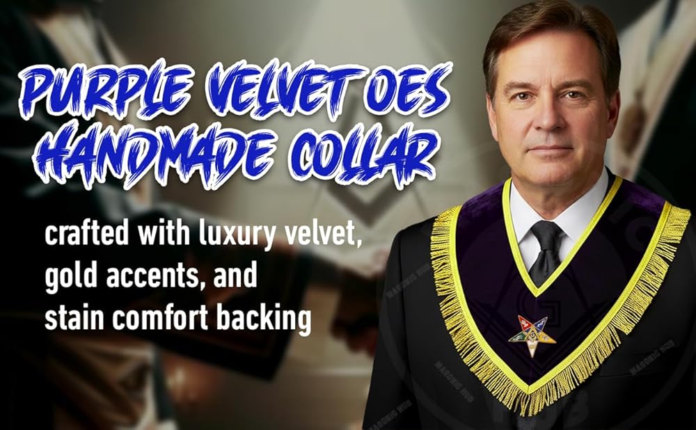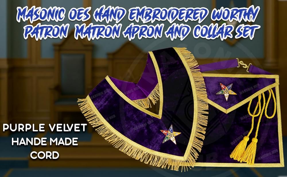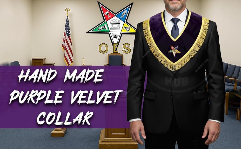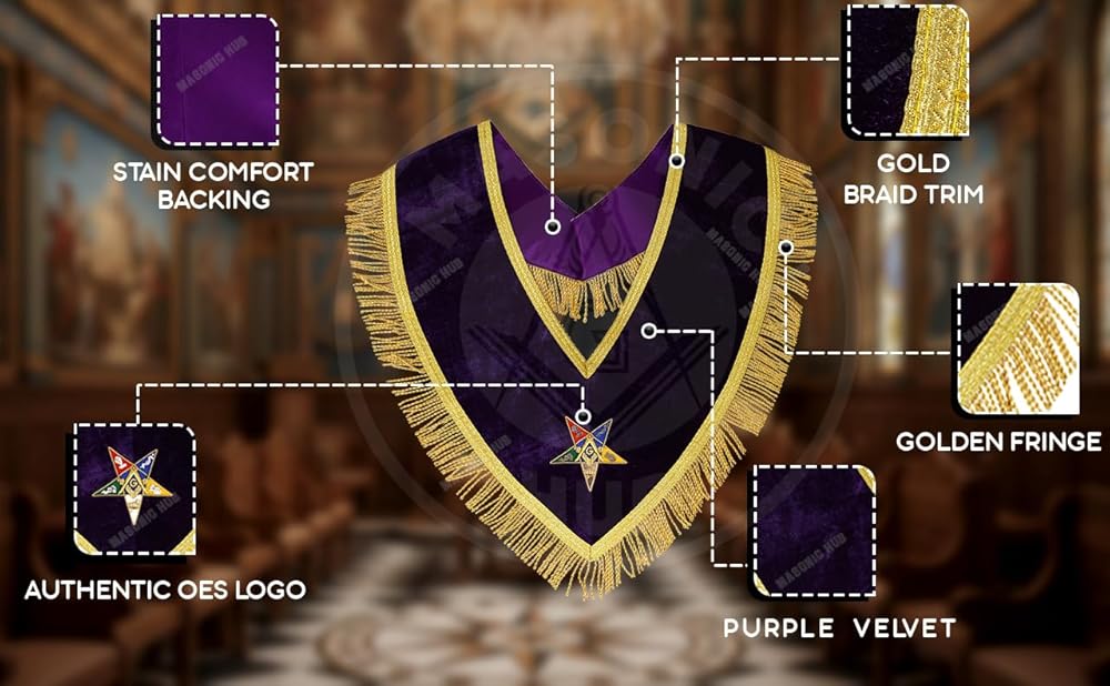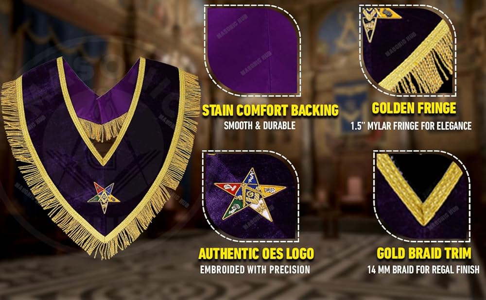 طوق راعي جدير باللون الأرجواني المخملي الماسوني OES مع جديلة ذهبية وهامش 1.5 بوصة، مبطن بالحرير الساتان، مصنوع يدويًا من Eastern Star Regalia