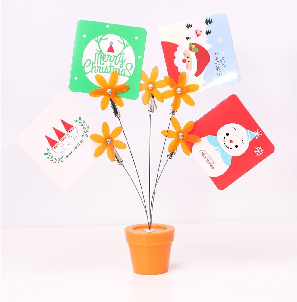 لطيف زهرة الجدول بطاقة مذكرة حامل حامل، 1 جهاز كمبيوتر شخصى صور كليب حامل مكتب حامل مذكرة ورقة ملاحظة مونموري صورة عيد الميلاد عرض الزفاف مع قاعدة بلاستيكية على شكل زهور (برتقالي)