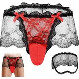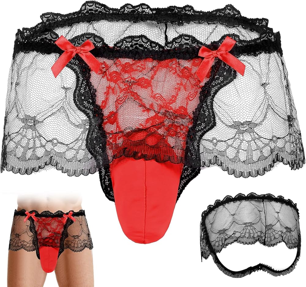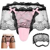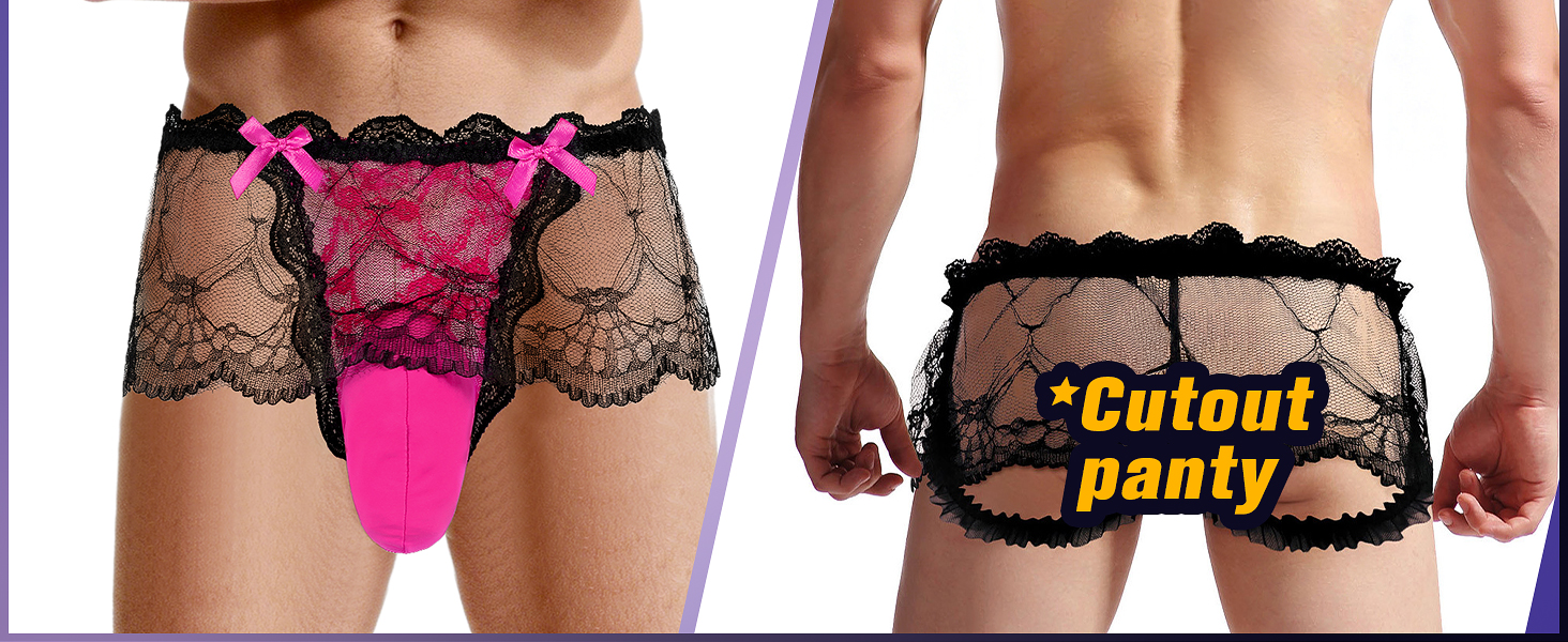 سراويل داخلية سيسي للرجال مع فيونكات، ملابس داخلية مثيرة من الدانتيل للرجال، ملابس داخلية للرجال Femboy شبكية مكشكشة (34-42) in Kuwait