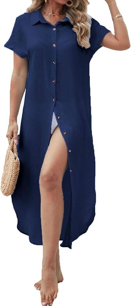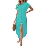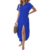 المزايا: تصميم فستان قميص بأزرار سفلية بطول طويل، يوفر تغطية كاملة أنيقة، والشقوق الجانبية تضفي مزيدًا من الراحة، ومتعدد الاستخدامات للاستخدام على الشاطئ ويمكن أيضًا ارتداؤه كفستان