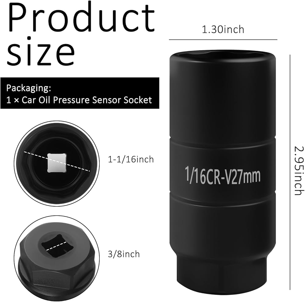 Product Size: The car oil pressure sensor socket is 2.95" in total length and 1.30" in OD. It fits most oil pressure sensor specifications on vehicles in the market, allowing easy access to tight spaces in the engine compartment. Please carefully verify the dimensions before placing your order