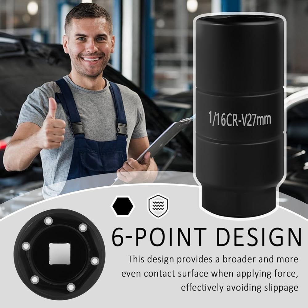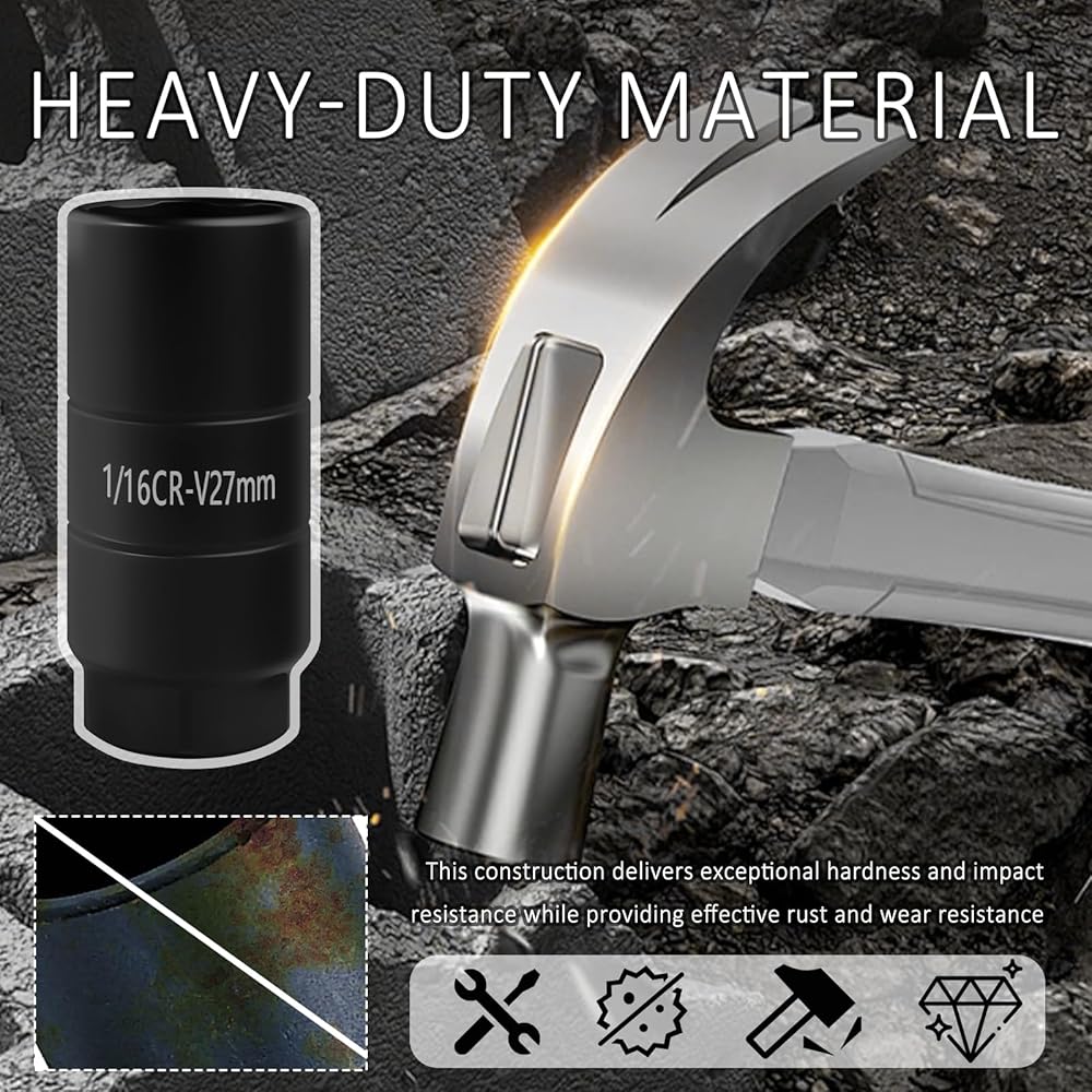 Heavy-Duty Material: This car 1 1/16 socket is precision-forged from high-grade steel in a single piece, featuring precision polishing and a specialized surface treatment. This construction delivers exceptional hardness and impact resistance while providing effective rust and wear resistance