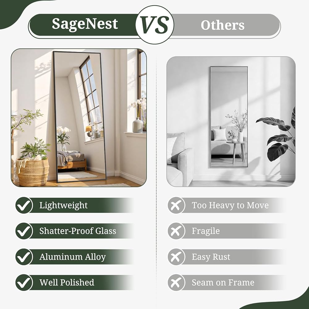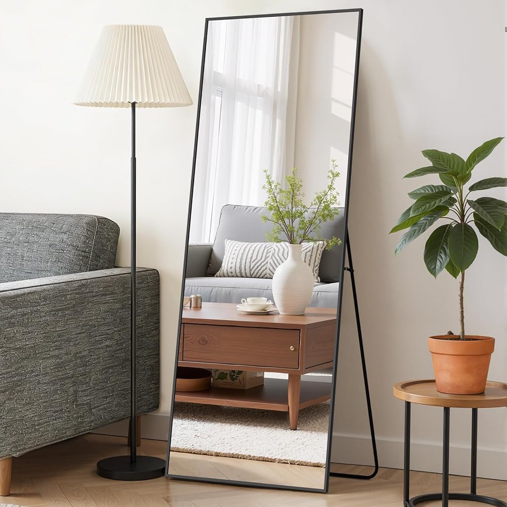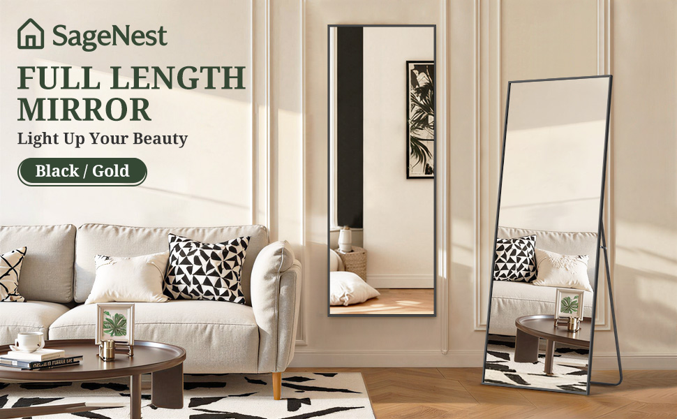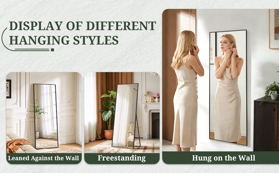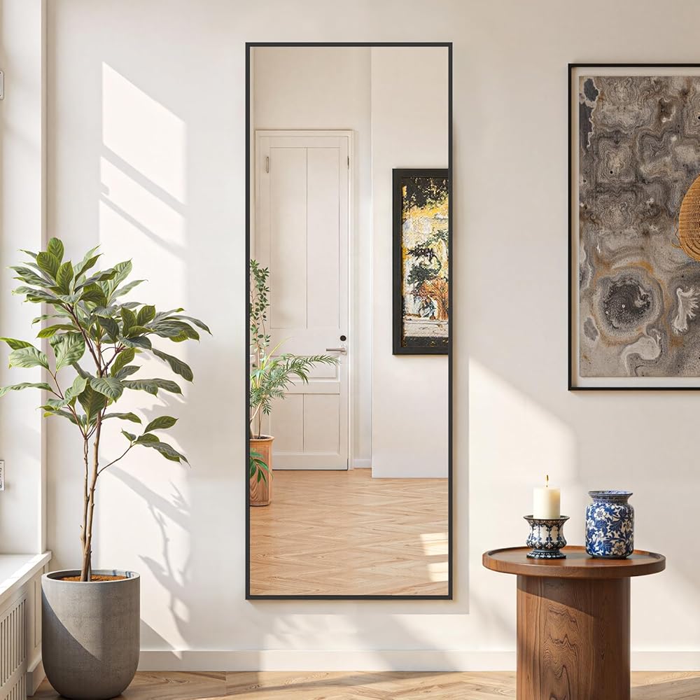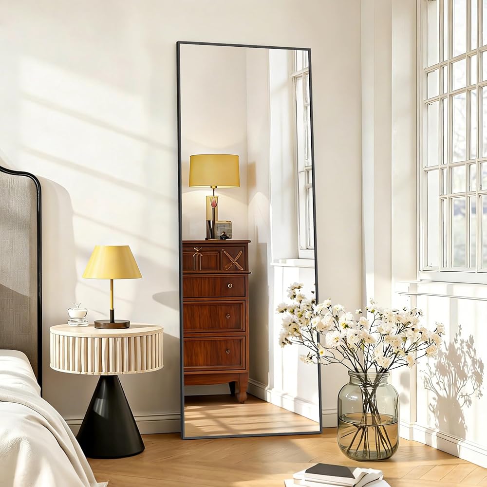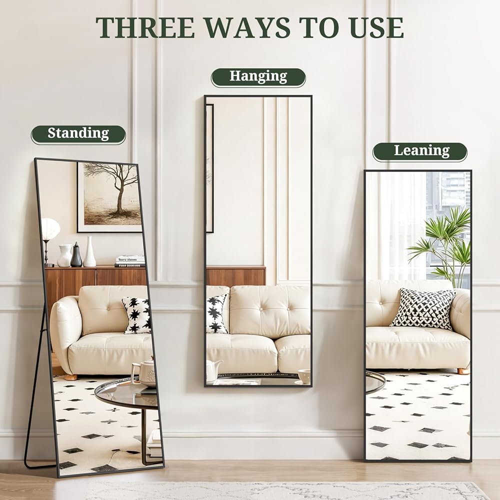 • ALUMINUM ALLOY FRAME: Built with a durable, rust-resistant aluminum alloy frame, this full size mirror features a slim 0.23" front edge and refined wire-drawn finish. The sturdy construction ensures long-term stability while maintaining a sleek, contemporary look.