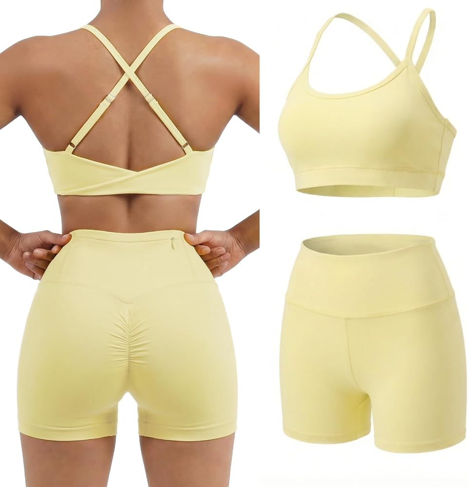 مجموعات التمارين الرياضية: مجموعة ملابس الصالة الرياضية للنساء مصنوعة من نسيج صديق للبشرة، مريحة ومسامية، مرنة ومرنة، خفيفة الوزن وغير شفافة