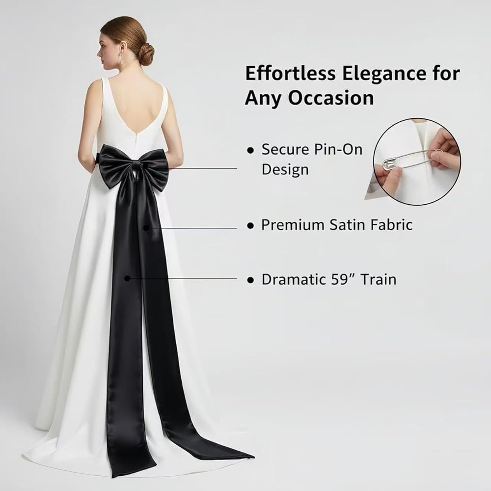 Statement Size: Features a 15.3" wide bow and 59" flowing train to add volume without overwhelming your outfit.