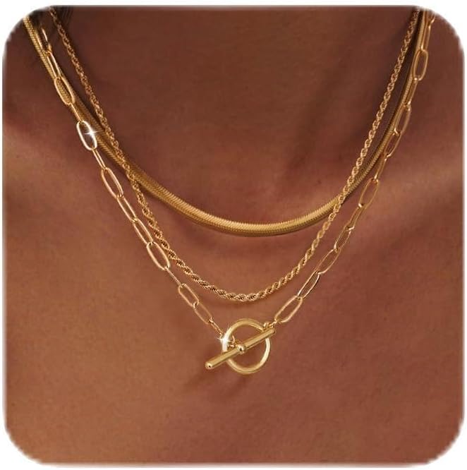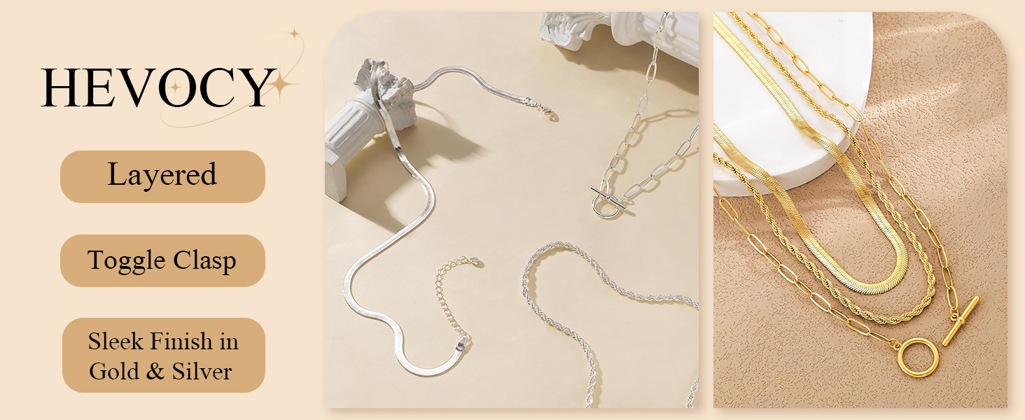 مجموعة قلادات ذات طبقات للنساء: تتميز مجموعة القلادات الذهبية المكونة من 3 قطع من HEVOCY بسلسلة ثعبان أنيقة وسلسلة حبل مزخرفة وسلسلة مشبك ورق حديثة مع مشبك تبديل OT. مصممة للتكديس بسهولة، يمكنك ارتداء الثلاثة معًا للحصول على مظهر جريء متعدد الطبقات أو تصميم كل قلادة على حدة للحصول على مظهر نظيف وبسيط