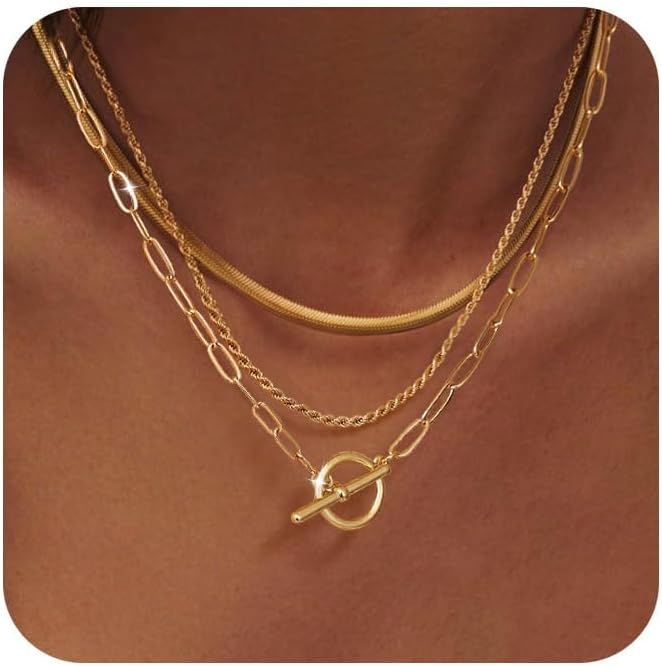 مطلي عالي الجودة، مصنوع للارتداء اليومي: مصنوع من النحاس المتين ومطلي بالذهب عيار 14 قيراط عالي الجودة، مجموعة القلادات الذهبية هذه خالية من النيكل والرصاص ولا تسبب الحساسية. مصمم لمقاومة البهتان والبهتان، فهو يوفر لمعانًا ناعمًا وثباتًا يدوم طويلاً يمكنك الوثوق به