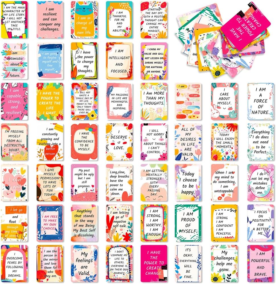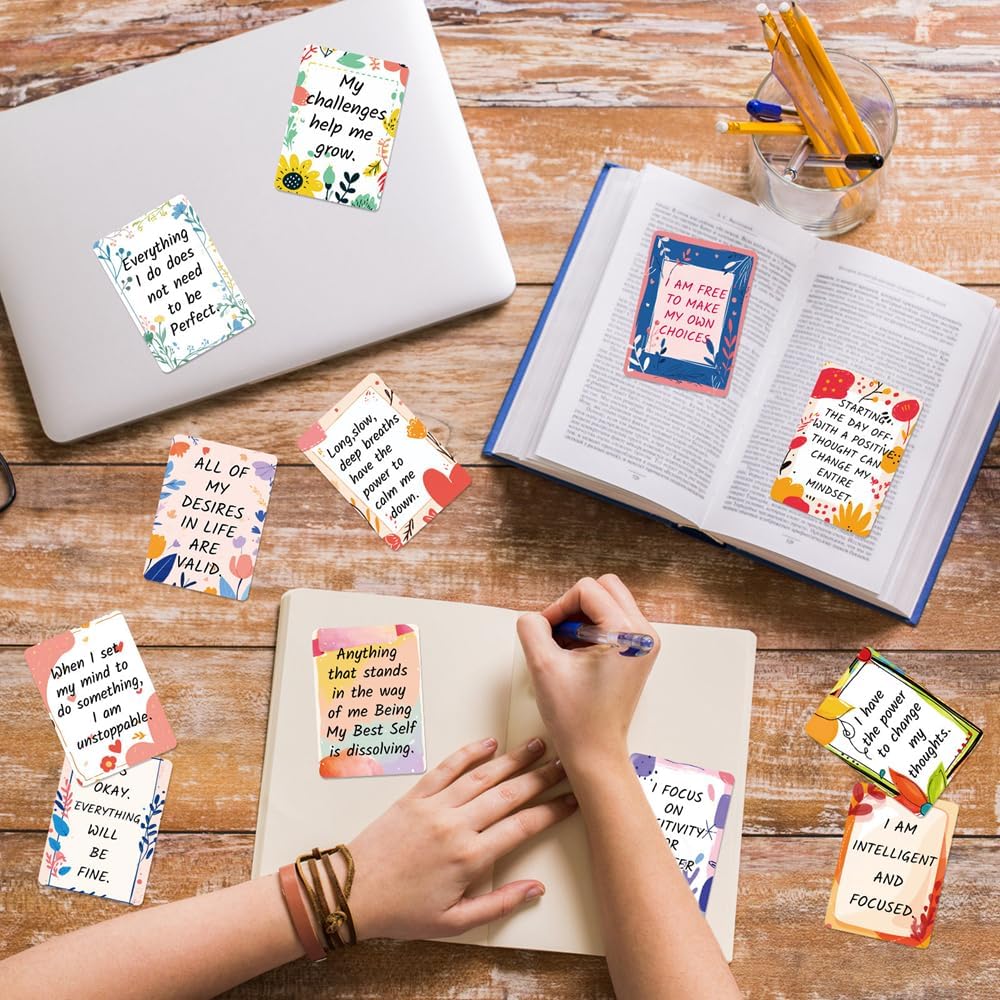 1. PERFECT SIZE: Affirmation cards size of 2.5 x 3.5 inches, and the thin package of these cards, it's easy to hold in hand.