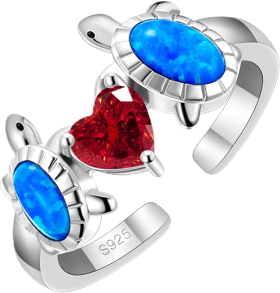 تصميم سلحفاة لطيف: سلحفاتان بحريتان، مصنوعتان من الأوبال، ترمزان إلى الأب والأم، وقلب الحب الماسي في المنتصف يمثل الابنة، وقلب الوالدين الجميل. هذا الخاتم هو الطريقة المثالية للتعبير عن حب الوالدين لابنتهم.