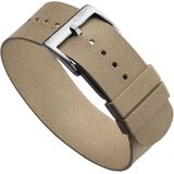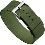 The WatchGecko TidalPass was inspired by classic British Military watchstraps, but with a WatchGecko twist. Instead of the traditional nylon, we have made it out of FKM rubber, a premium rubber which is known for its particular resistance to wear and extreme temperatures. And we have given it two floating keepers, so you can wear it with the traditional streamlined look, or else double it back like a classic military strap, for enhanced security on your wrist. Being rubber, it is of course waterproof, ideal for diving watches, but its low profile (just 1.5mm thick) suits it for a wide range of watches, including tool watches and vintage diving timepieces. Coming complete with a rugged stainless steel pin buckle (acid-etched with the famous WatchGecko logo, so you know it's authentic), this strap is the perfect three-way marriage of timeless style, durability and comfort. With a total length of 245mm, it fits wrists between 165mm and 220mm. The strap holes are spaced 5mm apart, to ensure the perfect fit.