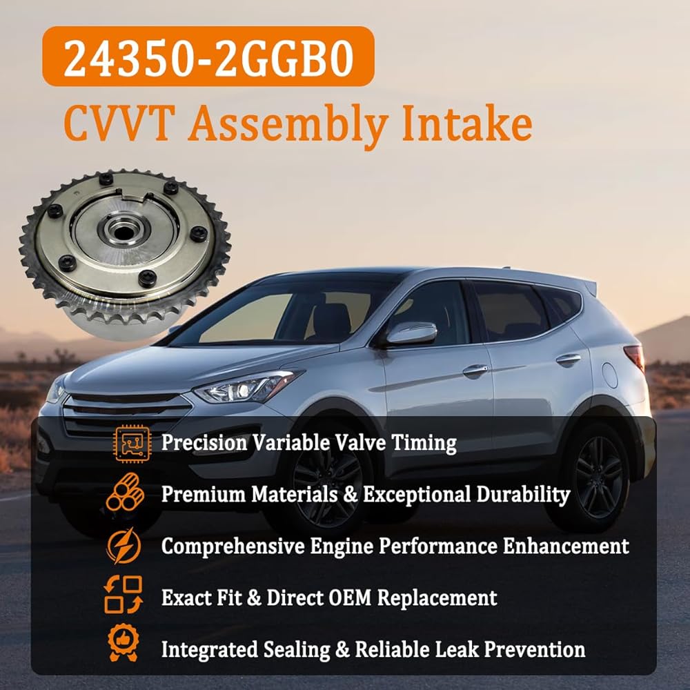 【24350-2GGB0 Intake CVVT Assembly Compatible with】Compatible with Hyundai Veloster N 2.0L Turbocharged 19-22, Santa Fe 2.0L Turbocharged & 2.4L 19-20, Santa Fe Sport 2.0L Turbocharged & 2.4L 16-18, Tucson 2.4L 19-21, Sonata 2.0L Turbocharged & 2.4L 16-19 and Kia Sorento 2.0L Turbocharged & 2.4L 16-19, Stinger 2.0L Turbocharged 18-19, Sportage 2.0L Turbocharged & 2.4L 16-22, G70 2.0L Turbocharged 19-22