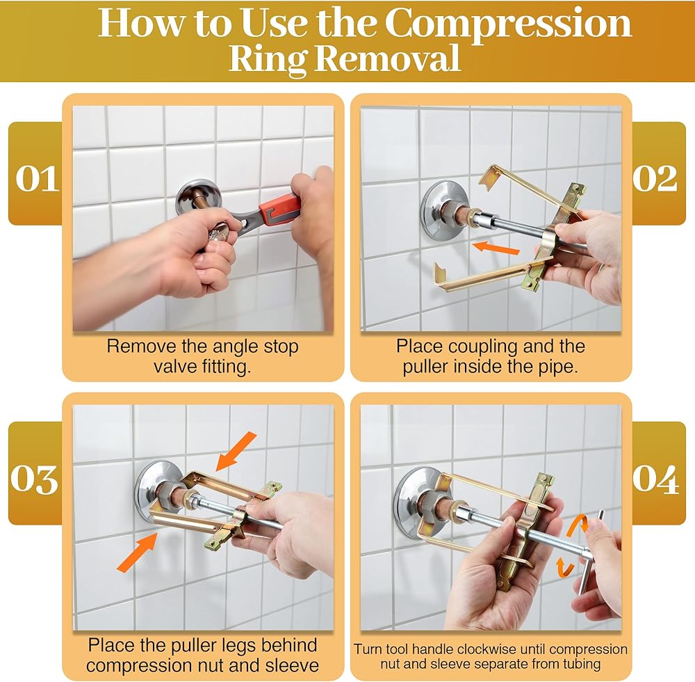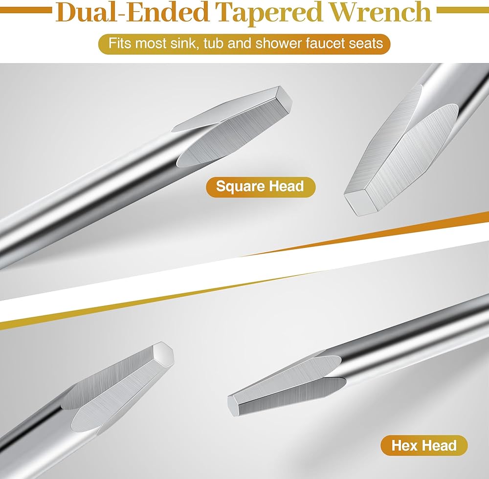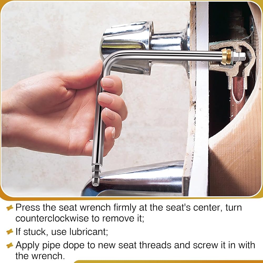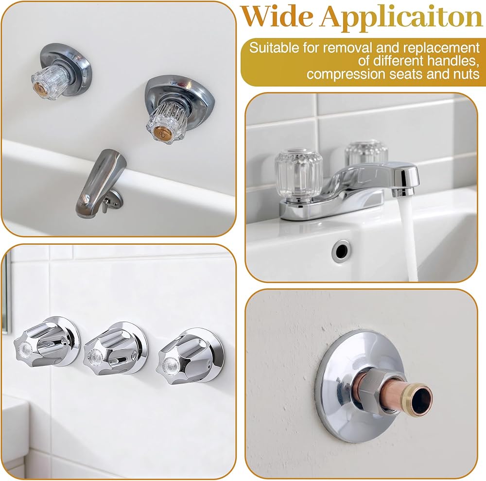 Experience smooth and efficient faucet maintenance with this all-in-one repair tool set. The faucet handle puller effortlessly removes corroded or stuck handles without damage, while the two double-ended seat wrenches feature a 2-sided design for stepped and tapered seats, ensuring perfect fit and easy operation. Built for durability and convenience, this tool combination helps you fix leaks, replace worn seats, and restore water flow quickly - making every repair simple and precise.