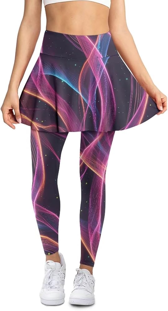 المطابقة: يسهل تنسيقه مع التي شيرت والسويت شيرت والقمصان والأحذية الرياضية والأحذية والديكور للحصول على مظهر يومي غير رسمي. تساعدك سراويل اليوغا الطويلة مع التنورة القصيرة الواسعة على الاستمتاع بالجمال أثناء ممارسة التمارين.
