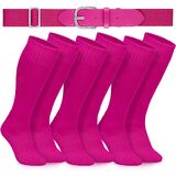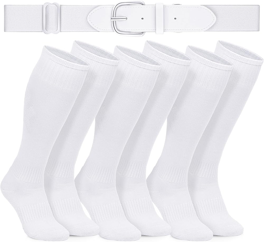 مجموعة جوارب وأحزمة البيسبول: تتضمن هذه المجموعة 3 أزواج من جوارب البيسبول وقطعة واحدة من حزام البيسبول القابل للتعديل. تحتوي جوارب الكرة اللينة على ثلاثة مقاسات: صغير للأطفال الصغار، ومتوسط للأولاد والبنات، وكبير للشباب. يأتي حزام حزام الكرة اللينة هذا بحجمين.