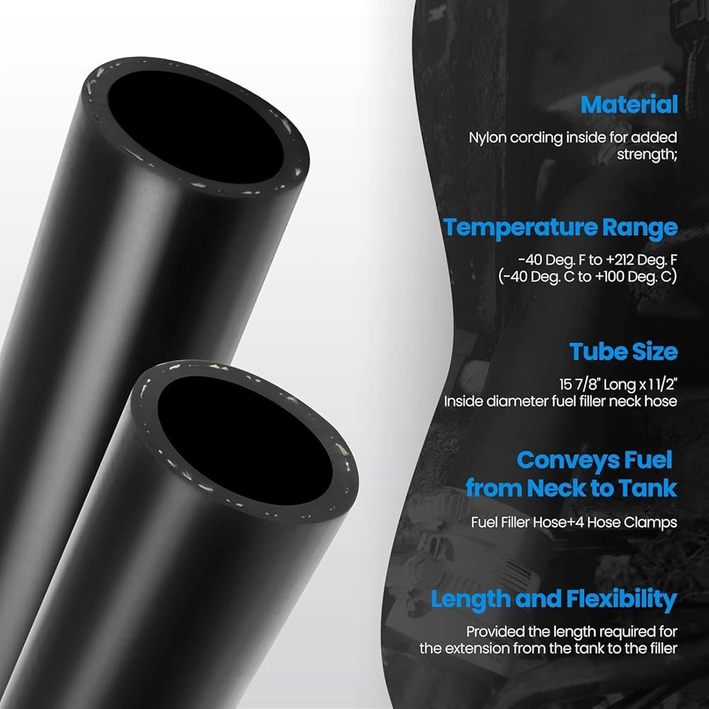 The fuel tank filler hose set is flexible, allowing for products being easy to cuts to meet your needs; Experience an easy installation process