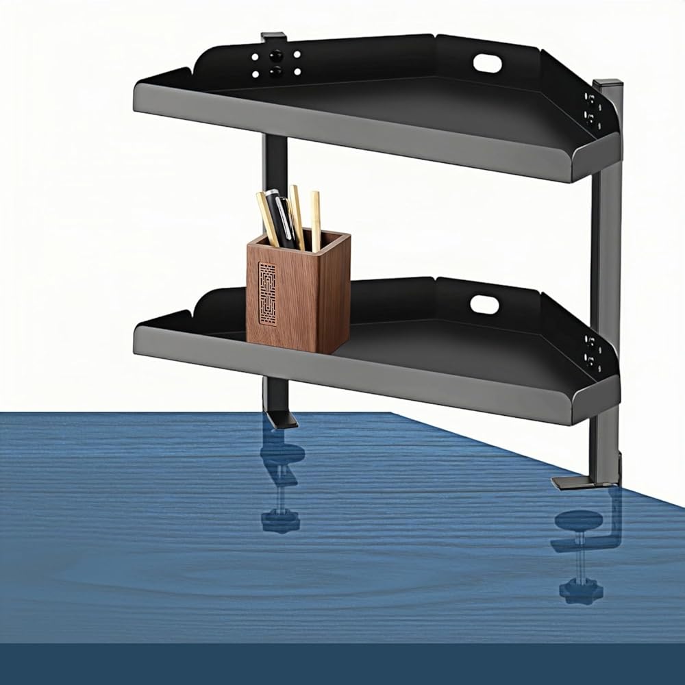 المزيد من الاستخدامات - يمكن تركيب المشبك على رف المكتب في المكاتب وورش العمل والمهاجع وغيرها من الأماكن. قم بزيادة المساحة الرأسية لسطح المكتب، والحفاظ على نظافته، والعمل بشكل أكثر كفاءة.