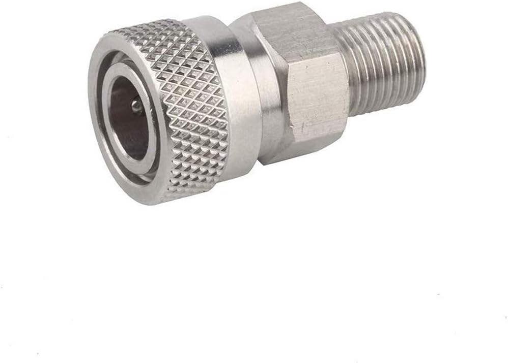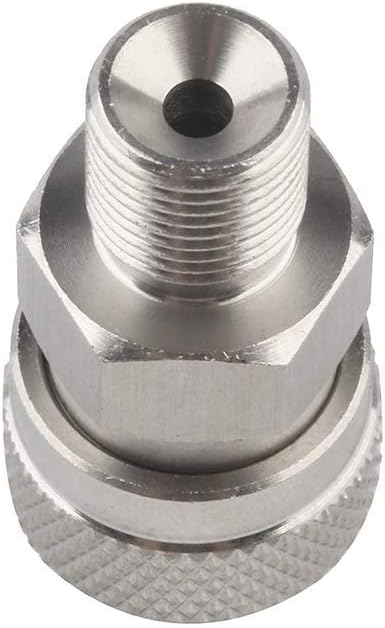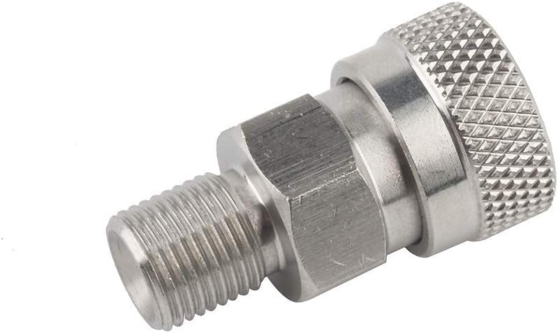 محول توصيل سريع: قم بفصل تركيبات أداة الهواء من ذكر إلى أنثى، سيسمح لك بنقل الهواء من خزان واحد إلى كرة الطلاء، لنقل الهواء في زجاجة كبيرة إلى زجاجة أصغر حجمًا أكثر قابلية للحمل، أو توصيله بخزانات الهواء عند استخدامه مع محولي التعبئة.