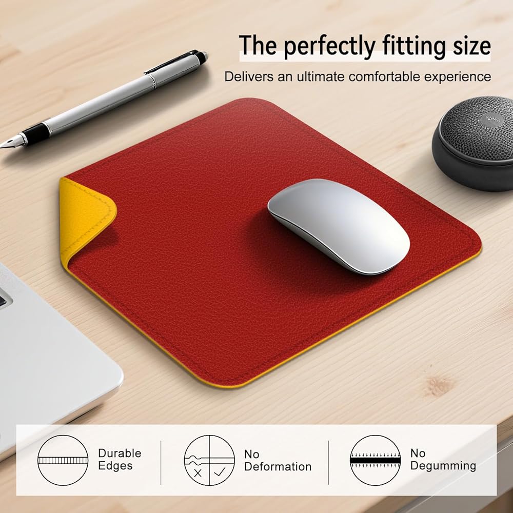 سجادة مكتب جلدية مزدوجة الجوانب - وسادة مكتب مقاومة للماء - مثالية للوحة الماوس الكبيرة وسجادات المكتب أعلى المكاتب (أحمر، 11 بوصة * 8 بوصة)