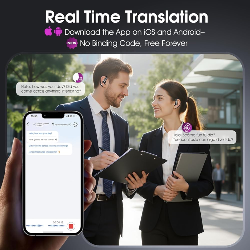 【ترجمة 4 في 1، موسيقى، مكالمات، مساعد الذكاء الاصطناعي】تدمج سماعات الأذن هذه في الوقت الحقيقي ترجمة الذكاء الاصطناعي ومكالمات الفيديو والمكالمات الهاتفية وتشغيل الموسيقى المتميزة في جهاز واحد أنيق. يمكنك التبديل بسهولة بين الاتصال والترفيه دون تغيير المعدات. صُممت سماعات الأذن اللاسلكية هذه لتحقيق الكفاءة والراحة اليومية، وهي مثالية للعمل والسفر والتعلم والاستخدام اليومي.