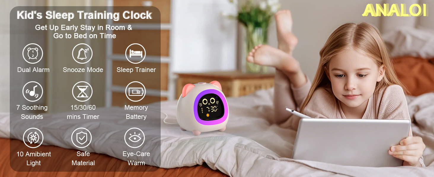 سحر المنبه المزدوج: مع القدرة على ضبط منبهين منفصلين — أحدهما للاستيقاظ في الصباح والآخر للتذكير بوقت النوم — يمكنك إبقاء جدول أطفالك سلسًا، سواء كان يومًا دراسيًا أو عطلة نهاية الأسبوع.