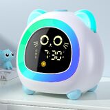 ساعة منبه للأطفال، حسنًا للاستيقاظ على مدار الساعة للأطفال مع ميزة حماية العين والتدريب على النوم وإيقاف التشغيل التلقائي و10 إضاءة ليلية منبه مزدوج لغرفة النوم، ساعة منبه للأطفال هدايا قطط وردية للفتيات