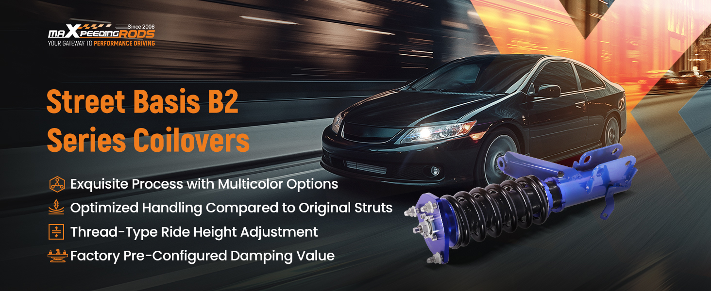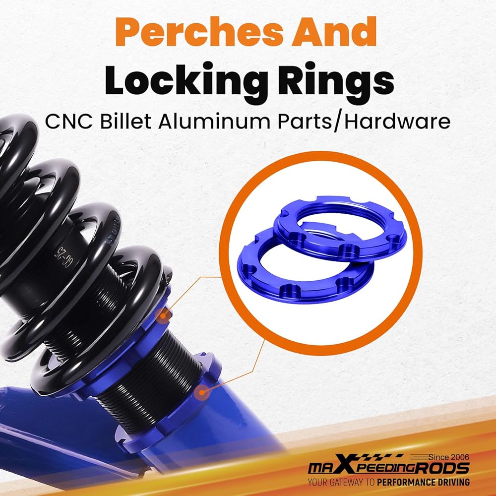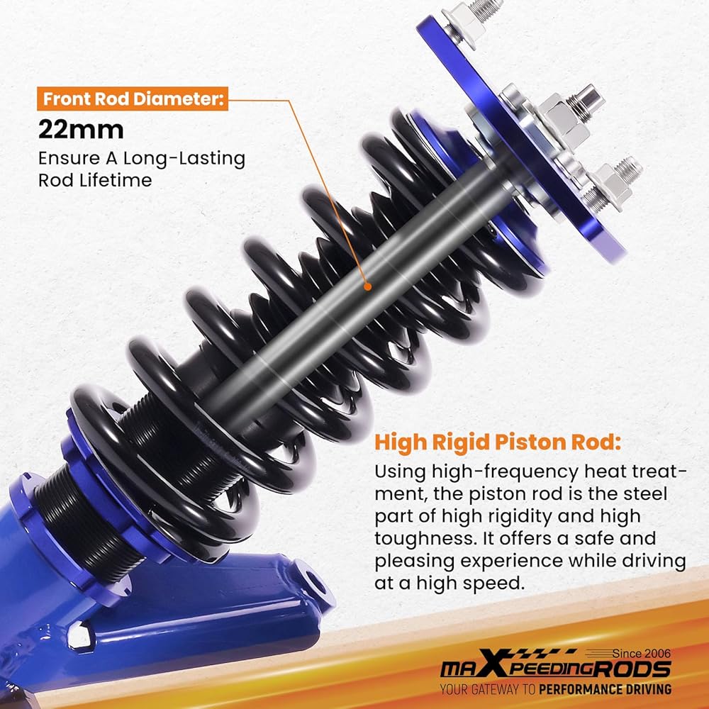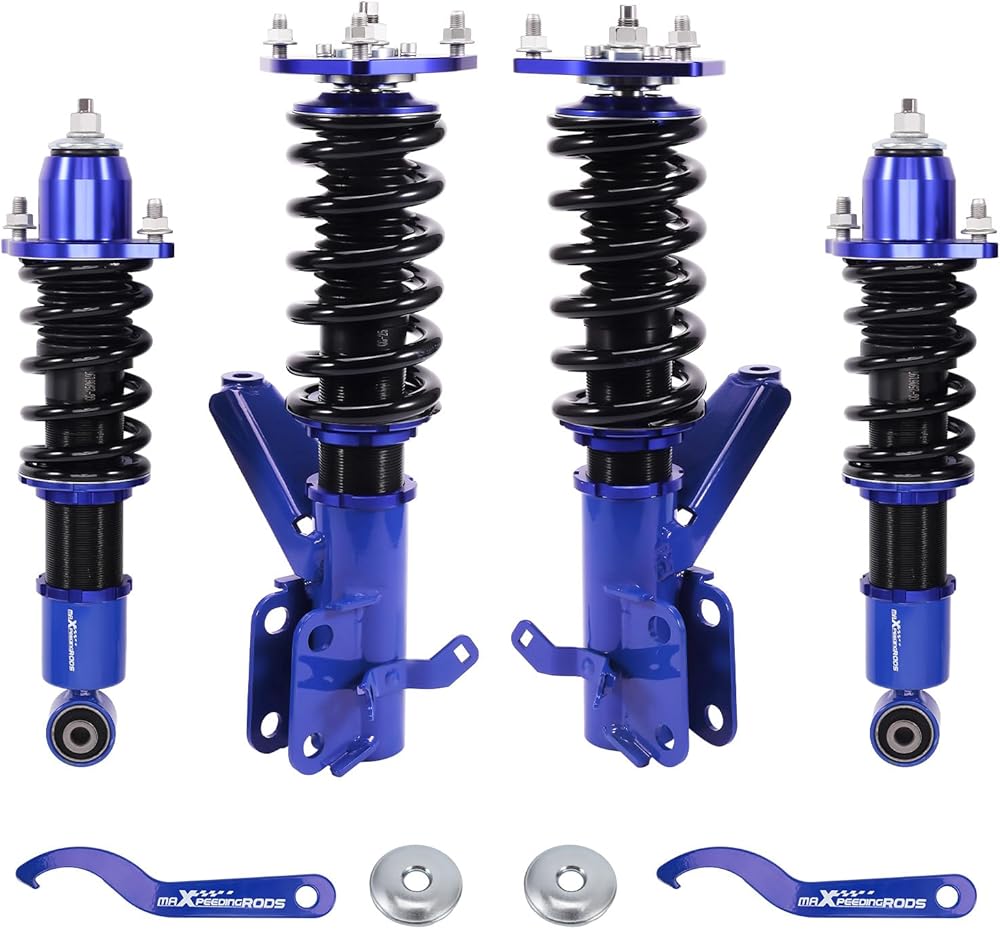 maxpeedingrods Coilovers لسيارة Honda Civic DX/EX/GX/HX/LX/Si 2001-2005، طقم تعليق كويلوفيرز قابل للتعديل للارتفاع، دعامات ممتصة للصدمات معدة مسبقًا، طقم خفض أزرق