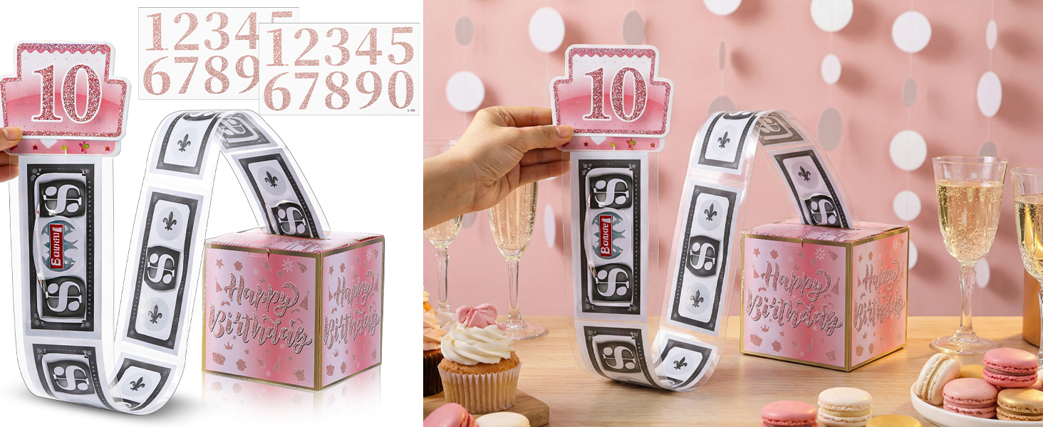 خيار هدية متعدد الاستخدامات - مناسب كصندوق نقود مفاجأة عيد ميلاد للنساء والفتيات من أي عمر، يضيف صندوق هدايا موزع الأموال هذا لمسة لا تُنسى لاحتفالات أعياد الميلاد.