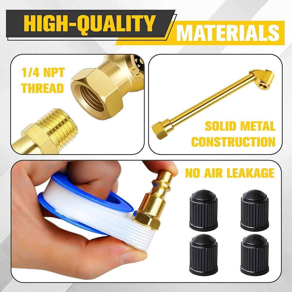 Durable and Corrosion-Resistant: Constructed from high-quality metal alloy and brass, this tire inflation kit is built to last. It offers excellent hardness, wear resistance, and corrosion resistance, ensuring reliable performance for years