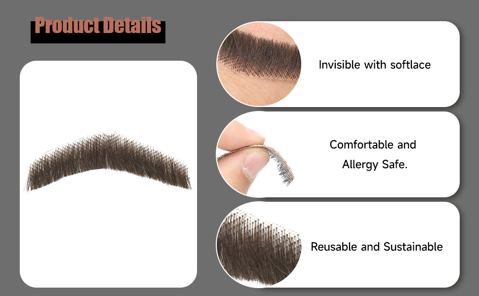 قابلة لإعادة الاستخدام ومستدامة: لا توجد رائحة لطيفة على الإطلاق. تم تصميم هذه الشوارب المزيفة للاستخدام عدة مرات، ما عليك سوى إزالة الملصق بعناية ووضعه في صندوق نظيف بعد الاستخدام. وهذا شعر وجه مزيف صديق للبشرة مصنوع يدويًا بواسطة العمال لتثبيت خصلات الشعر واحدة تلو الأخرى في شبكة الدانتيل.