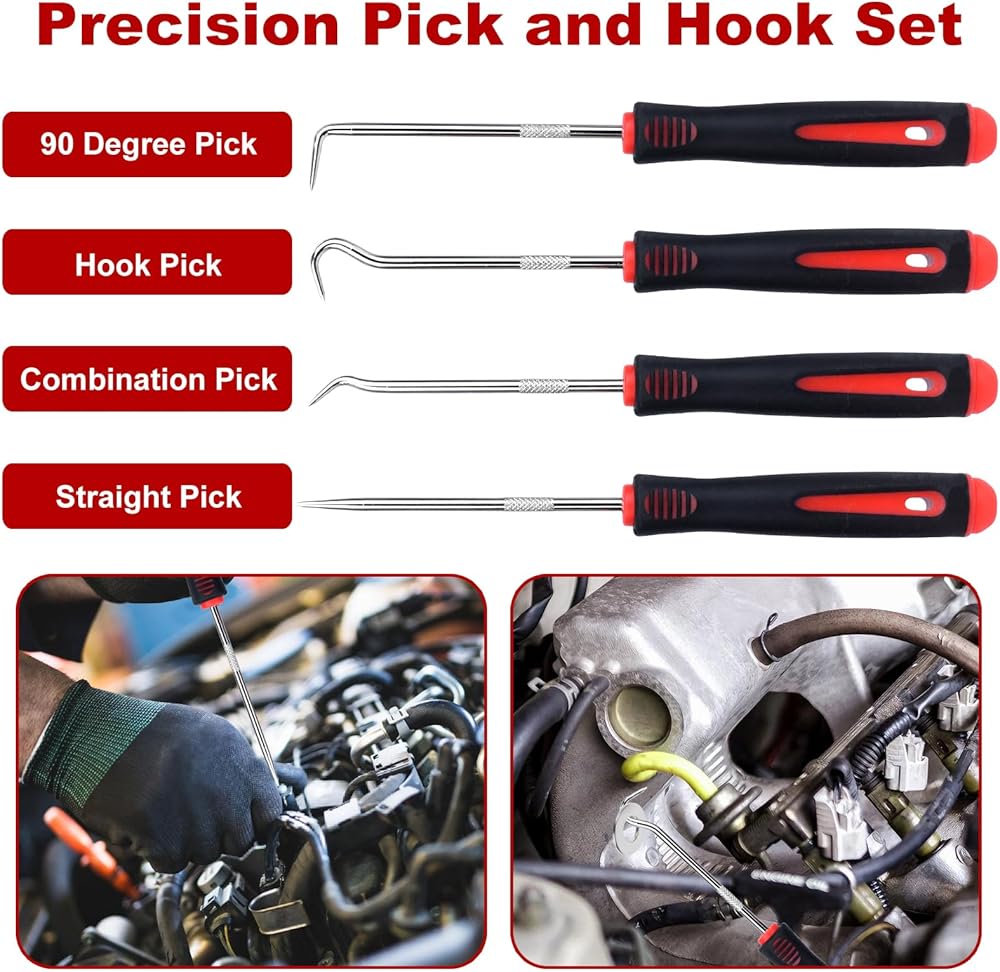 Different shape hooks for a variety of tasks, Ideal for removing O-Rings, clips, wires, gaskets, washers and other small parts in tight spaces.