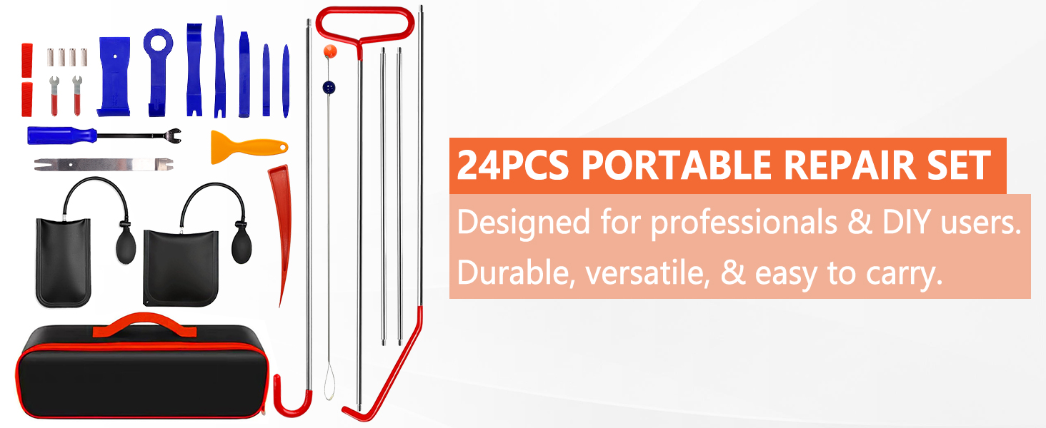 أدوات إصلاح محمولة ستانلس ستيل، 65 بوصة، 24 قطعة