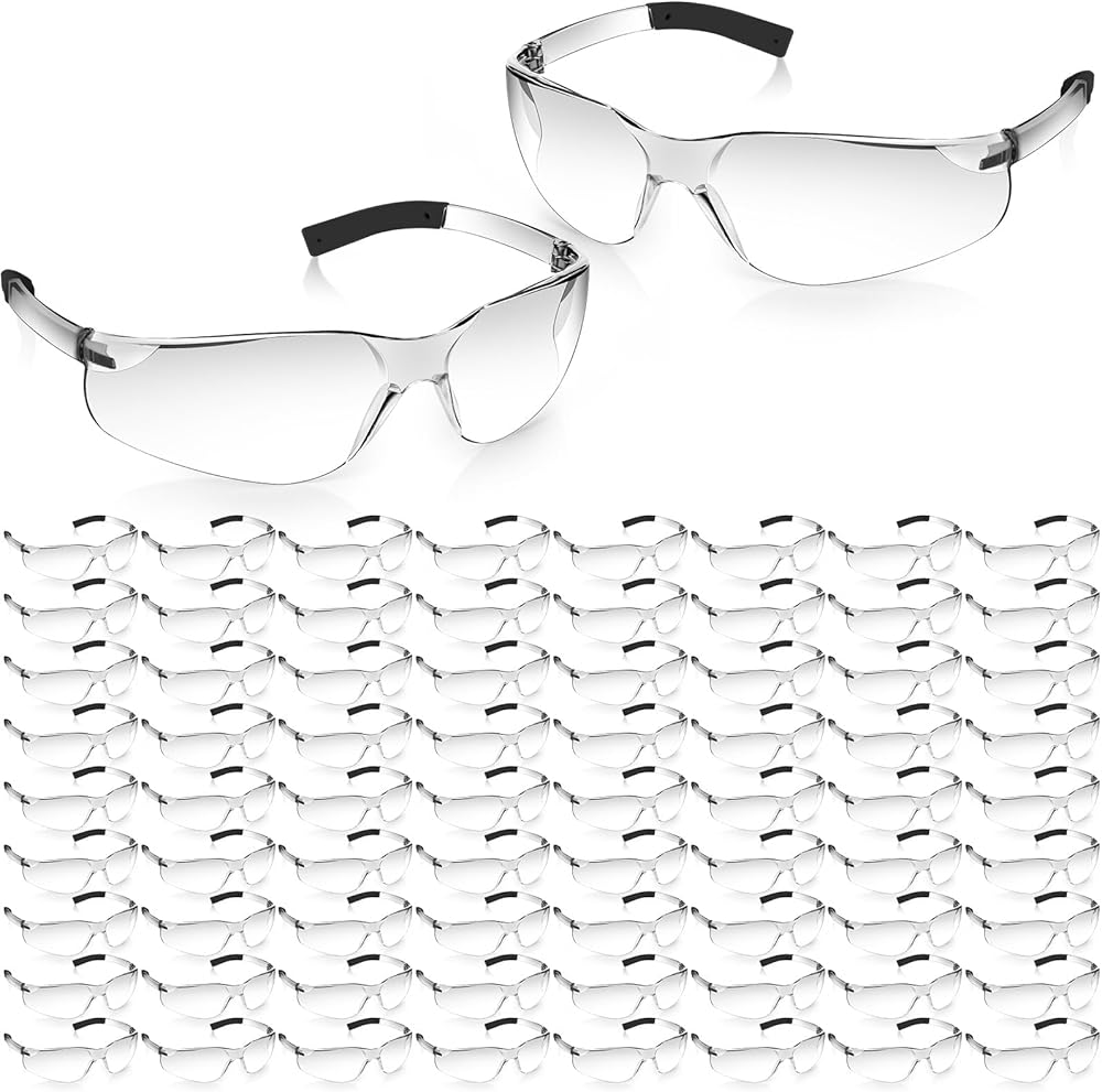 Features: 150 Pack Safety Glasses: Durable polycarbonate (PC) construction offers scratch/impact resistance. Ergonomic, lightweight, and unisex with a wrap-around design for comfort and peripheral clarity. Perfect for teams, families, and various indoor/outdoor activities like construction, labs, yard work, and DIY projects. Specifications: Color: Clear Package Size: 32 x 28.9 x 29cm/ 12.6 x 11.38 x 11.42 inch Package Weight: 3.75 kg/ 8.27 lb Package includes:150 pack Safety Glasses Notes: Manual measurement, please allow a slight error in size. There may be slight color differences due to different screen displays.