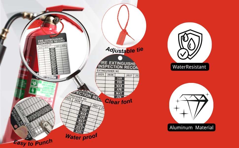 مادة ألومنيوم متينة: مصنوعة من الألومنيوم الفاخر، بطاقات طفاية الحريق الخاصة بنا مقاومة للطقس، ومقاومة للتمزق، وتدوم طويلاً، ومثالية لعمليات الفحص الشهرية الداخلية والخارجية.