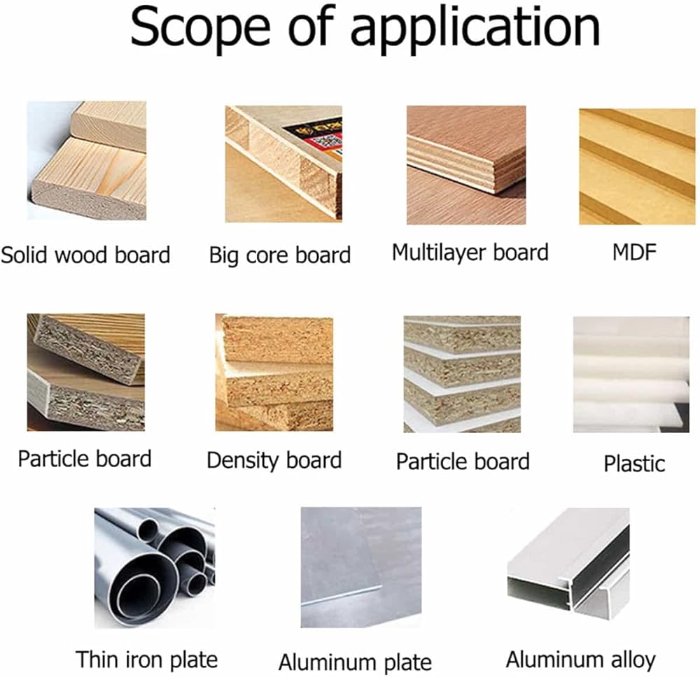 Suitable for pulling groove, boring or cutting 1mm-2mm of thin wood, solid wood, multilayer board, MDF, plastic board, aluminum, thin iron sheet, aluminum alloy.