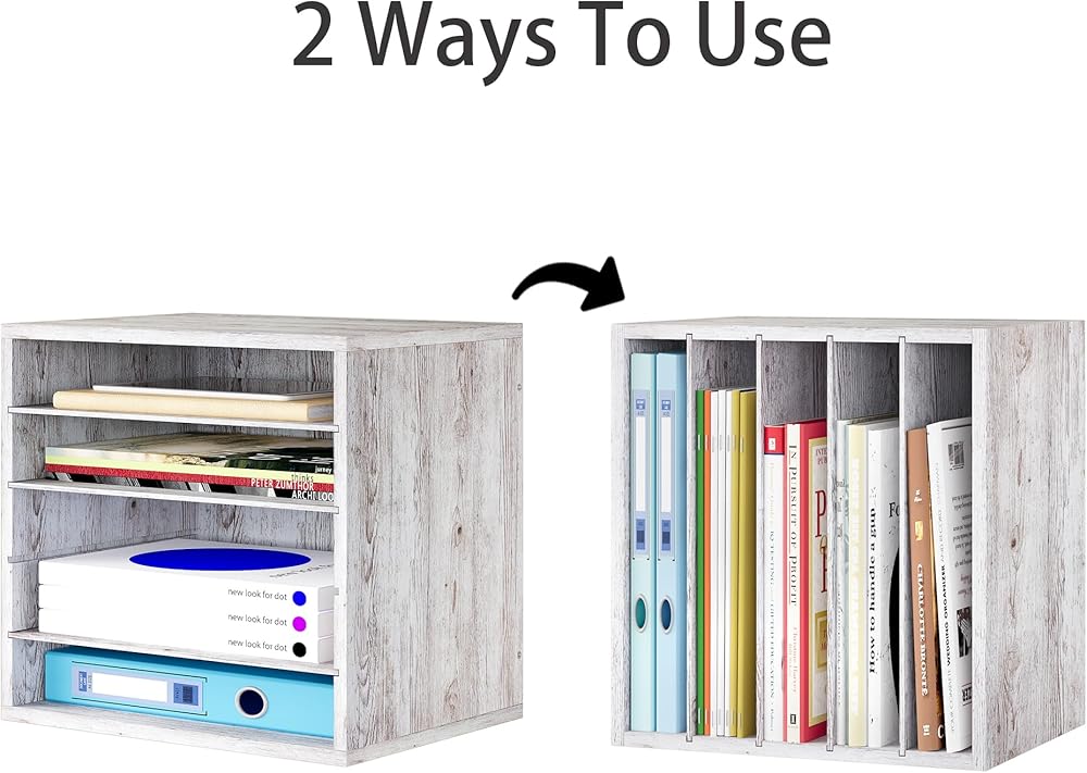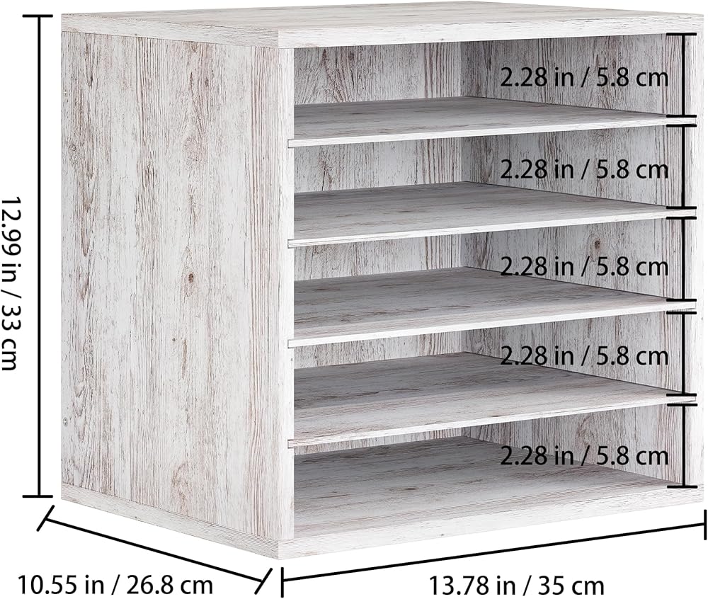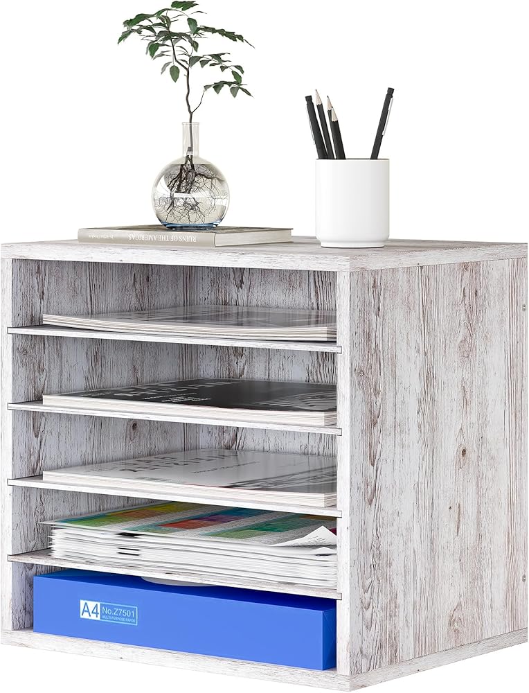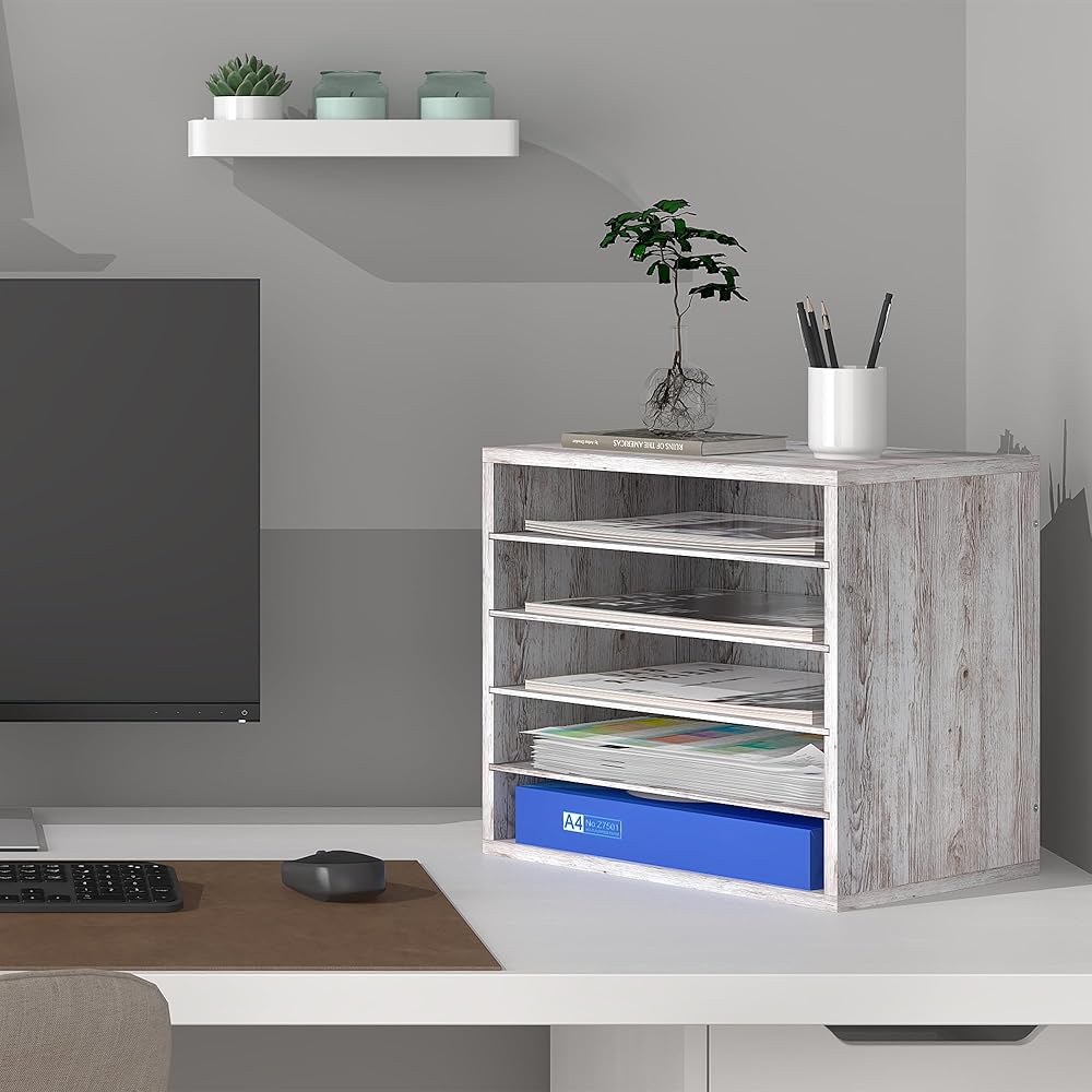 منظم فارز البريد، منظم ملفات سطح المكتب الخشبي بحجم الحروف، لوازم مكتبية متينة لتخزين الورق مع أرفف قابلة للتعديل للمكتب، 5 مقصورات بيضاء