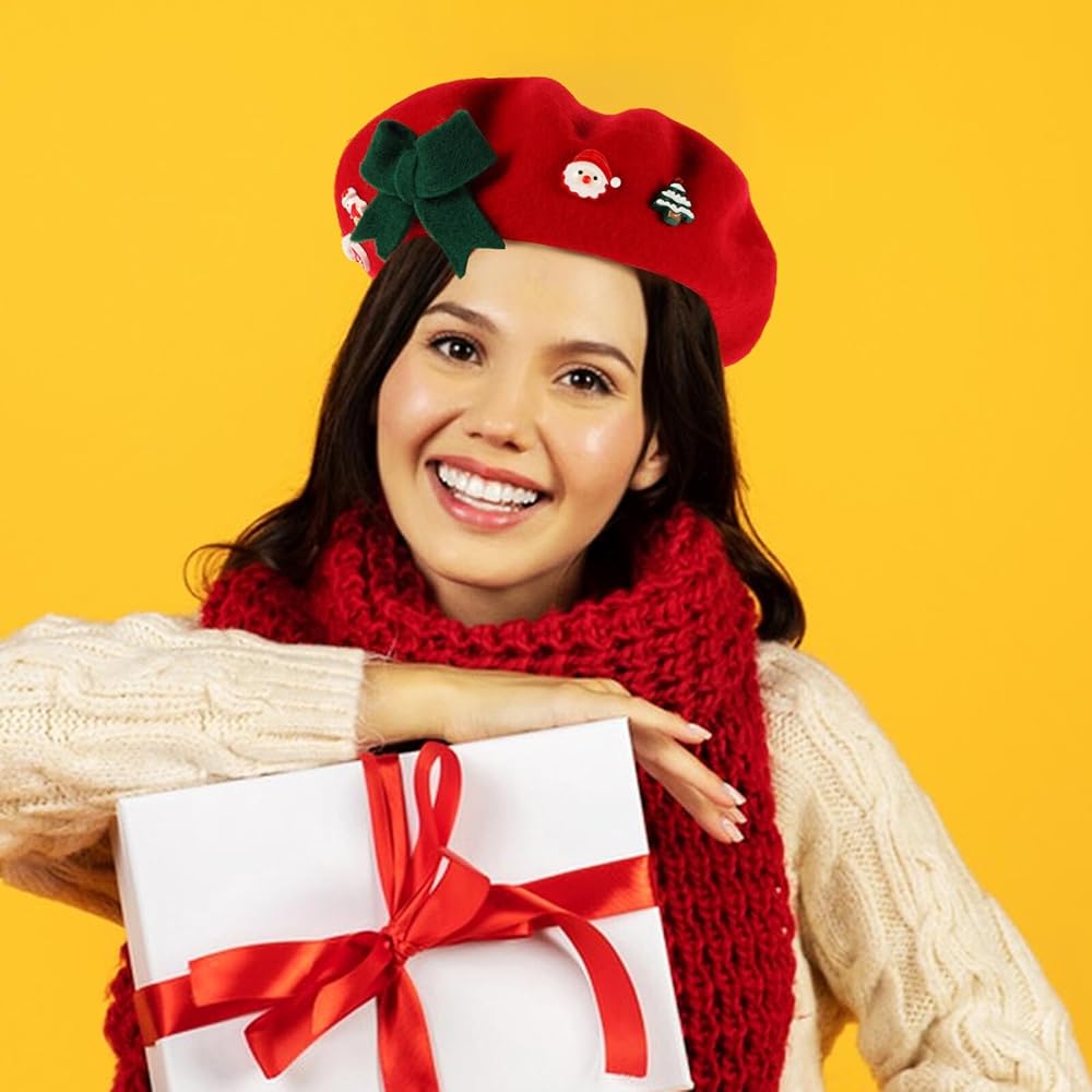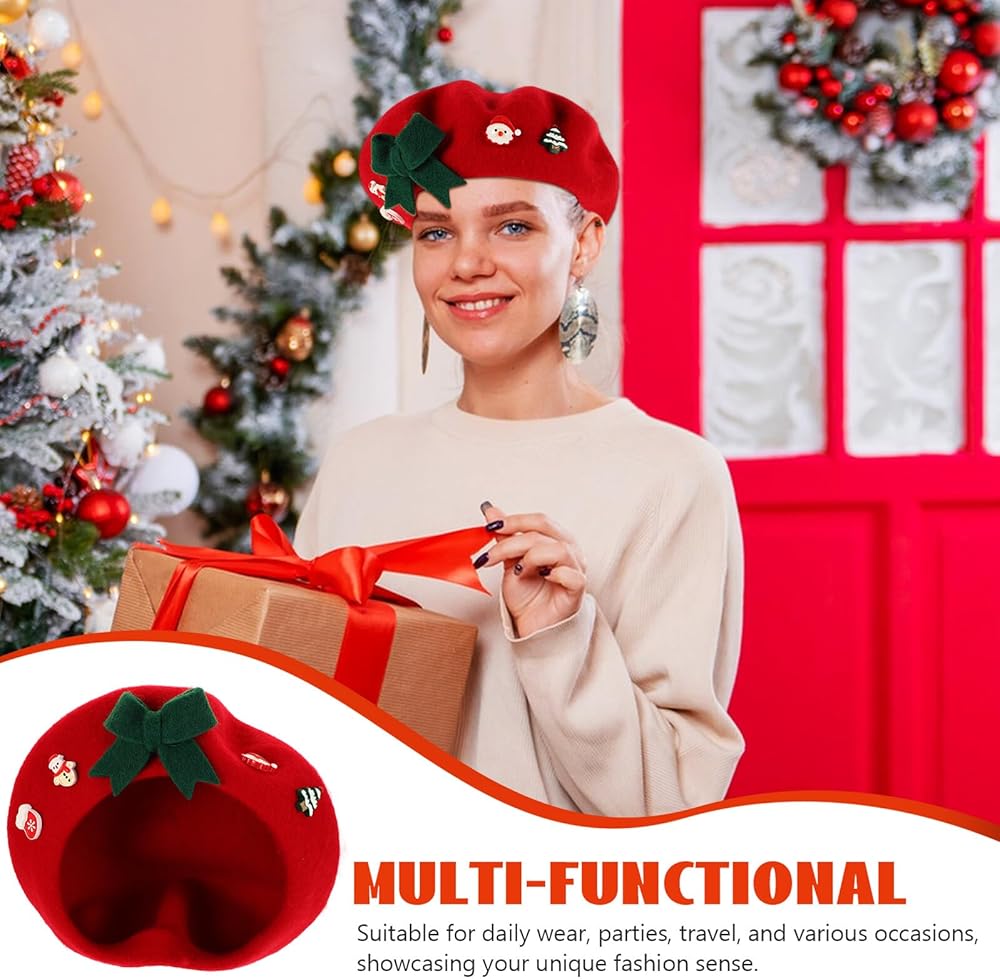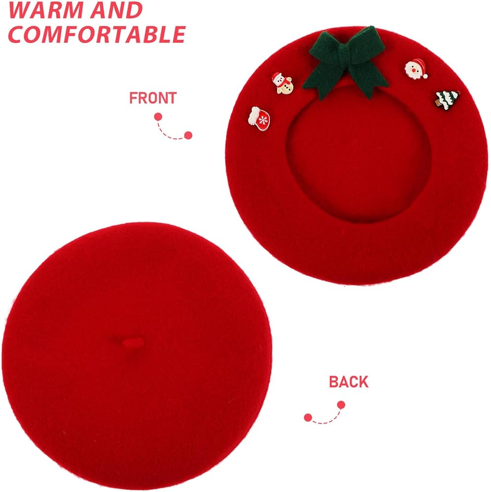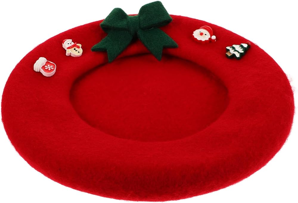 VALICLUD عيد الميلاد قبعة للنساء ورأى الصوف الفنان قبعة مع Bowknot الأحمر شتاء دافئ قبعة قبعة عطلة الإكسسوارات للسيدات