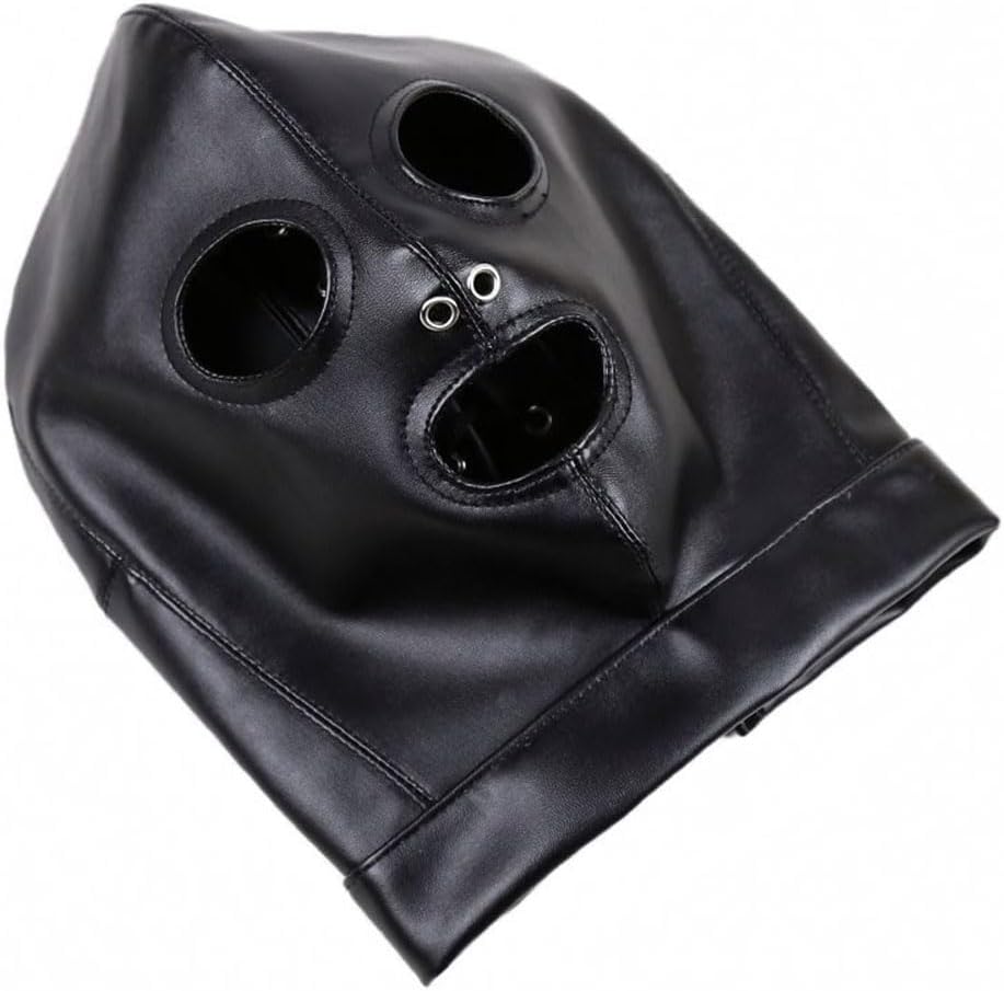 Full face mask leather head cover design combines fashion and trend to bring you the best experience.fashion headpieces is black color with leather,which can adapt to different occasions and outfits.