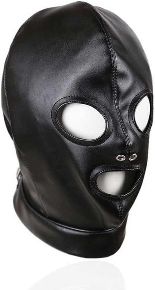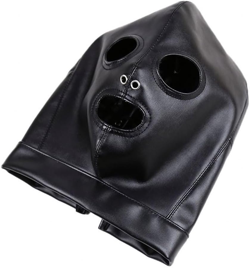 Black Leather Full Face Mask Costume Masquerade Party Cosplay Hood for Men Women Girl