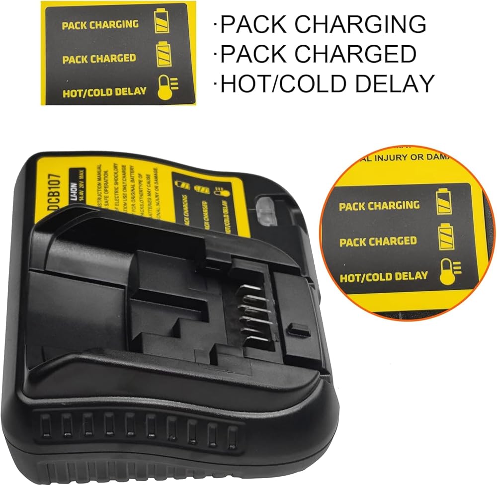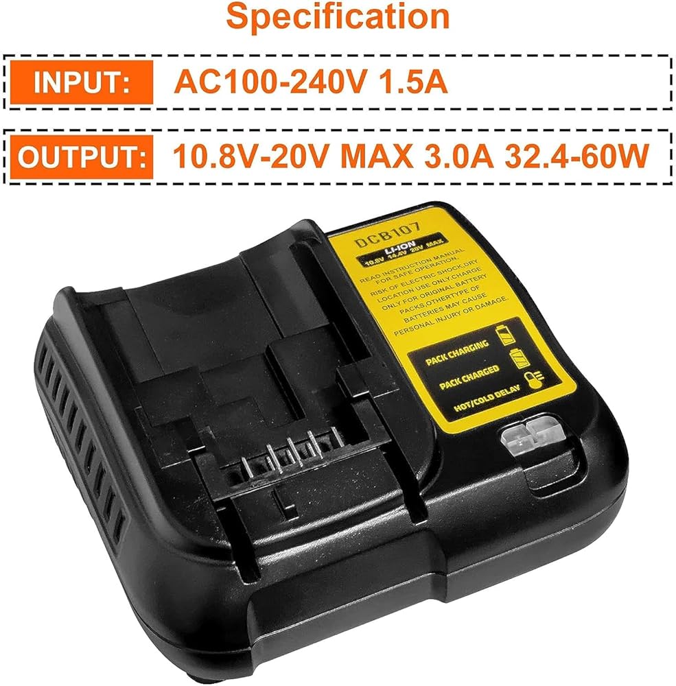 Compatible with Dewalt 12V-20V MAX Li-Ion battery DCB120 DCB127 DCB206 DCB204 DCB200-2 DCB200 DCB180; Replacement battery charger for Dewalt DCB112 DCB115 DCB101 DCB105 DCB107.
