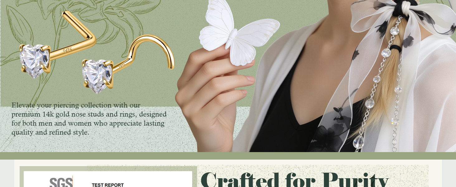 [هيكل من الذهب والمويسانتي الفاخر عيار 14 قيراط]: مصنوعة من الذهب الصلب الأصلي عيار 14 قيراط ومرصعة بالمويسانيت الرائع، توفر مجوهرات الأنف الذهبية هذه متانة مدى الحياة. خالية تمامًا من النيكل ولا تسبب الحساسية، وهي آمنة للبشرة الحساسة ومناسبة للارتداء اليومي في كل من الثقوب الجديدة والمعالجة.