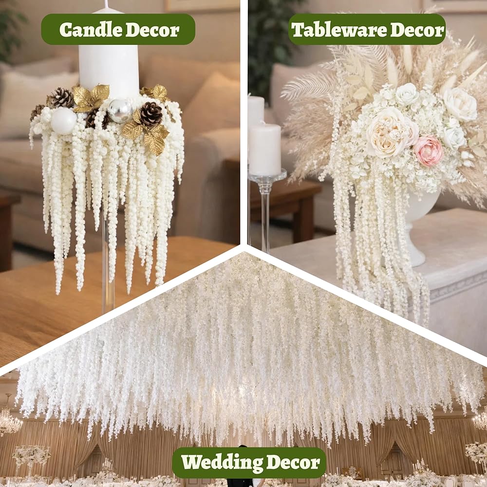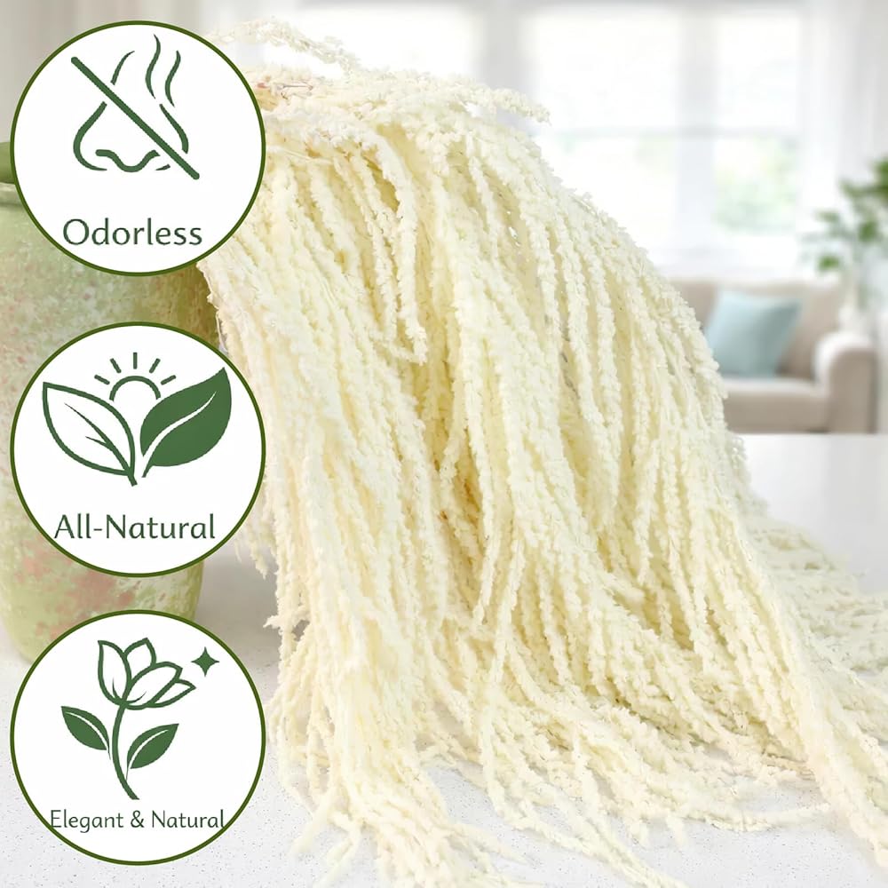 [قطيفة مجففة ممتازة] - تحتوي هذه الحزمة على 5 قطع قطيفة بيضاء مجففة، وسيقان متدفقة، يبلغ قياس كل منها حوالي 20-25 بوصة، مثالية لتعليق الزهور، وخلفيات الزفاف المتتالية، والأقواس، والزهور المجففة الأنيقة لعرض المزهرية.