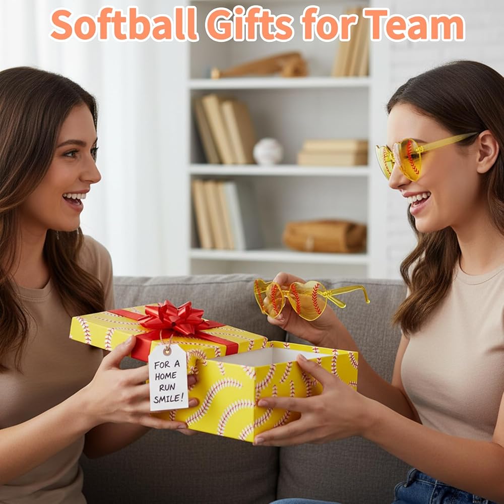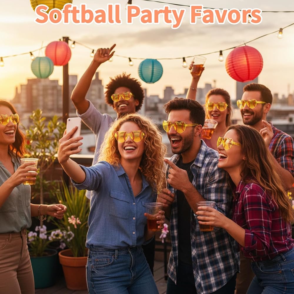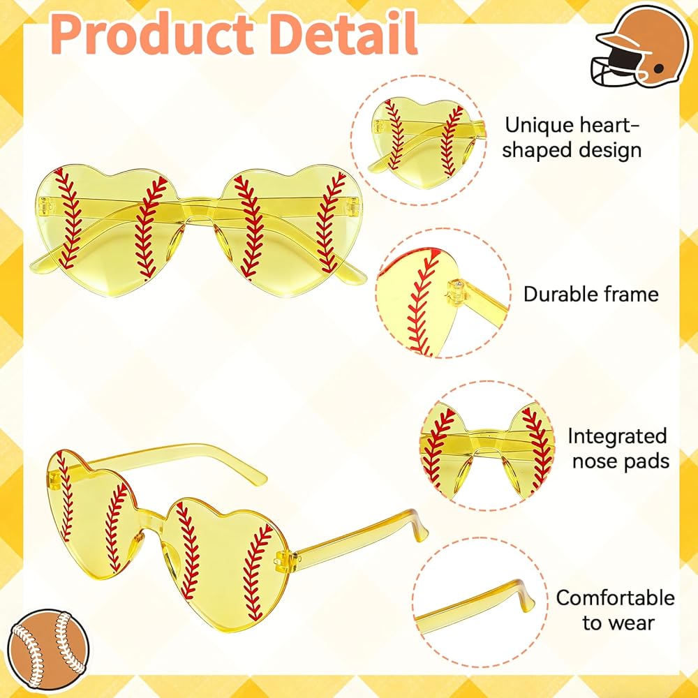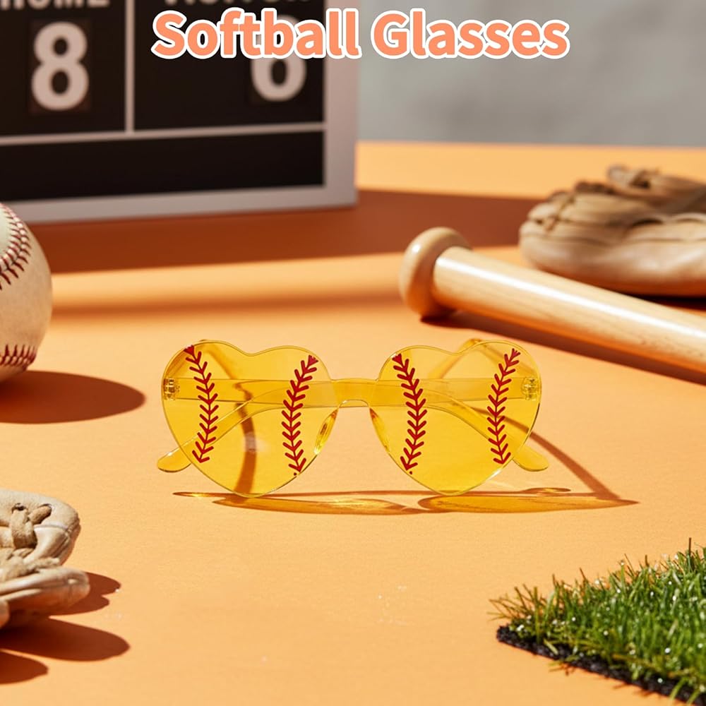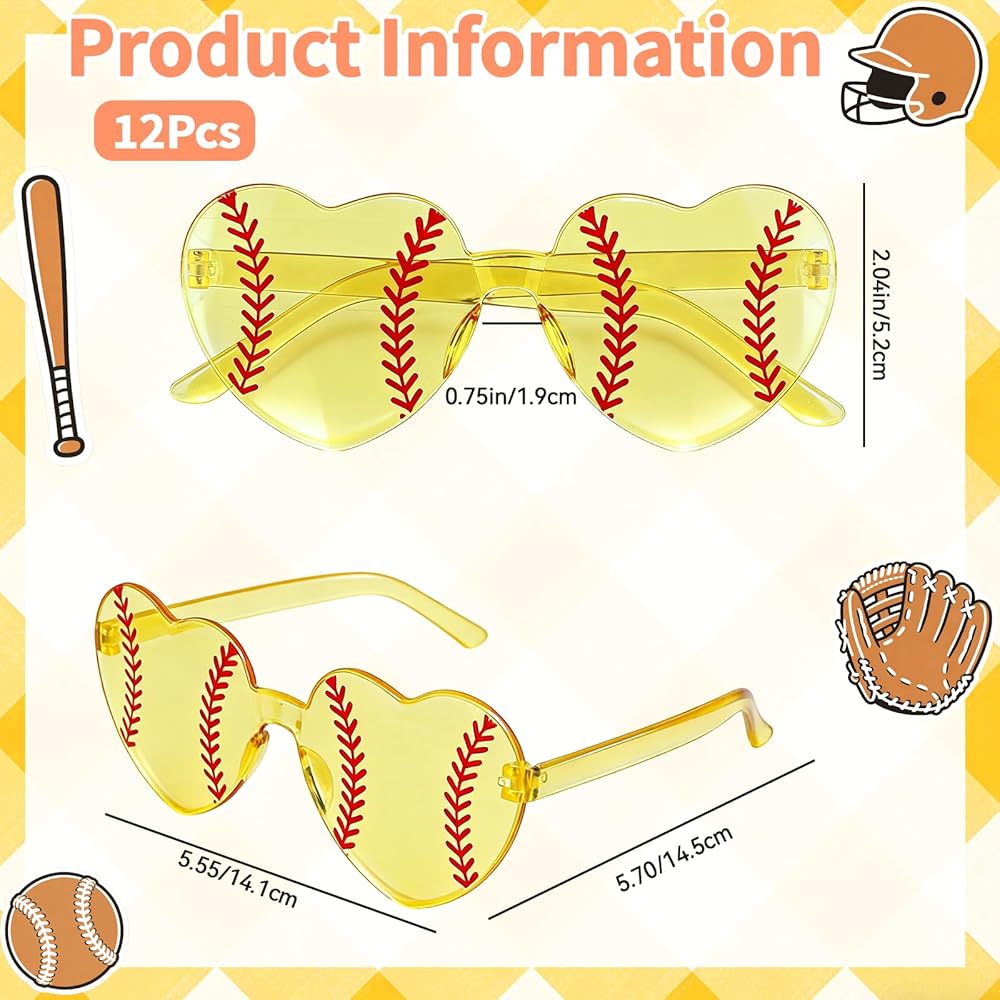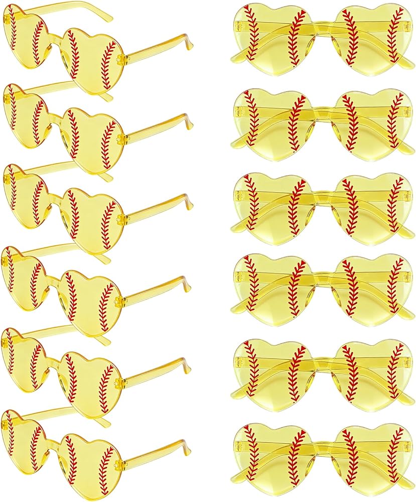 These softball-themed heart sunglasses are the perfect accessory to showcase team spirit. This 12-pair set is designed for coaches, fans, and team supporters to create a fun and unified look during celebrations.