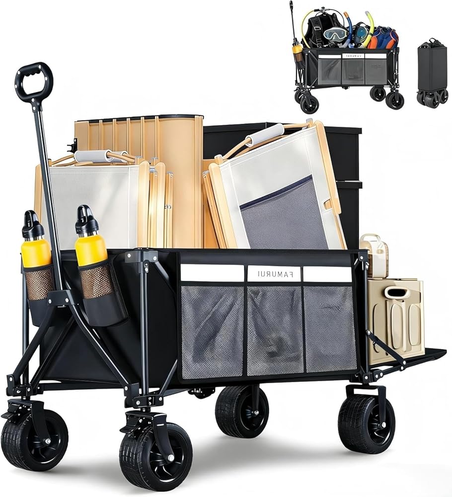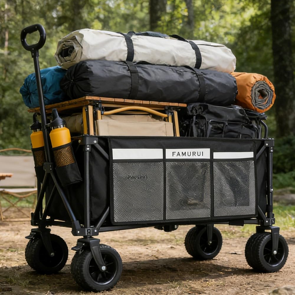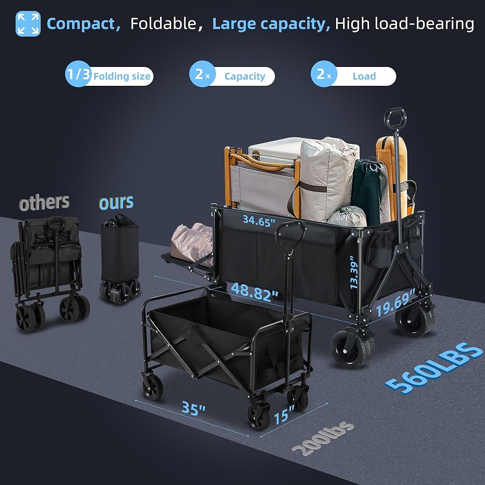 [استخدام متعدد السيناريوهات من التخييم إلى التسوق] مثالي للشاطئ والتخييم ومسارات البقالة والمهام المتحركة. يمكن طيها بشكل أنيق للتخزين وتعمل بشكل موثوق كعربة رياضية، أو عربة قابلة للطي، أو عربة أدوات قابلة للطي للعائلات النشطة وعشاق الهواء الطلق.
