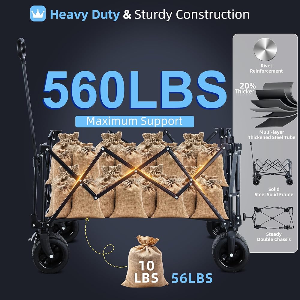 [إطار فولاذي عالي التحمل بسعة 560 رطلًا] تم تصميم هذه العربة شديدة التحمل بأنابيب أكثر سمكًا بنسبة 20% ولحام مزدوج الطبقة، وتدعم ما يصل إلى 560 رطلاً. تتميز بنسيج أكسفورد 600D المتين، مما يجعلها عربة شديدة التحمل وقابلة للطي للمعدات الخارجية أو البقالة أو الأحمال الثقيلة.