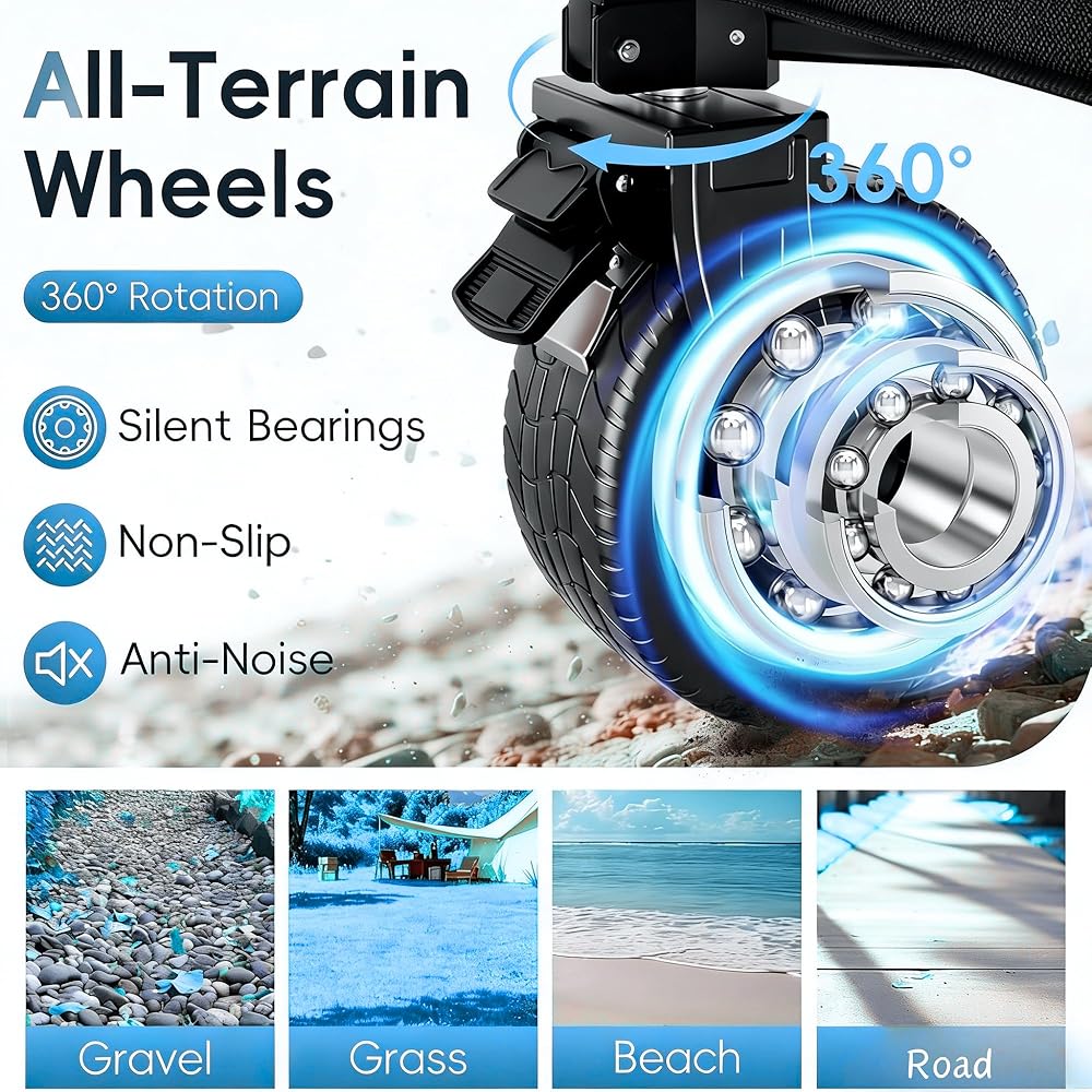 [نسيج متين وواقي ثلاثي الطبقات] مصنوع من مادة أكسفورد عالية الكثافة 600D المقاومة للماء والتمزق والغبار. تضمن الخياطة المعززة استخدامًا طويل الأمد كعربة شاطئ موثوقة للبيئات الرملية أو الرطبة أو القاسية.