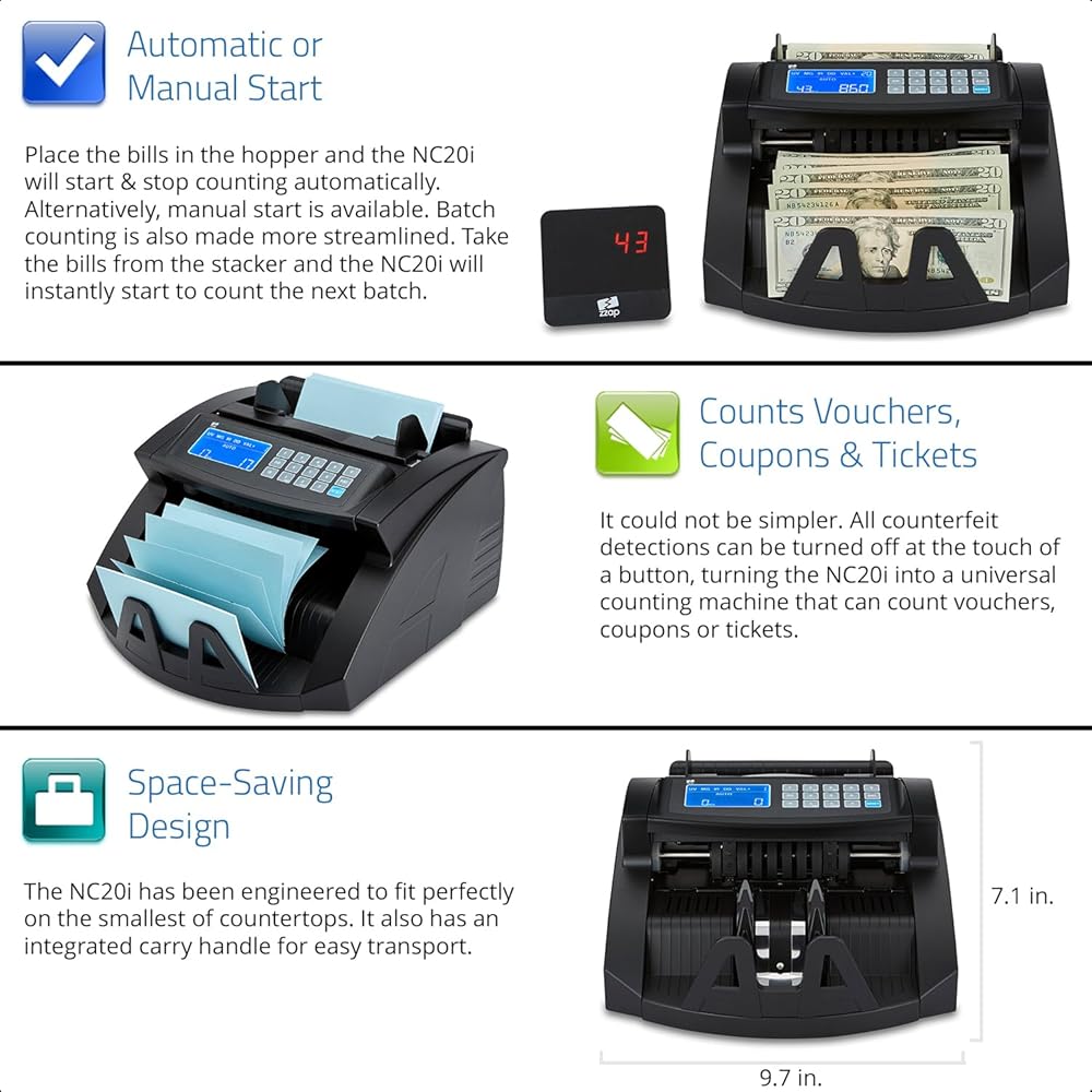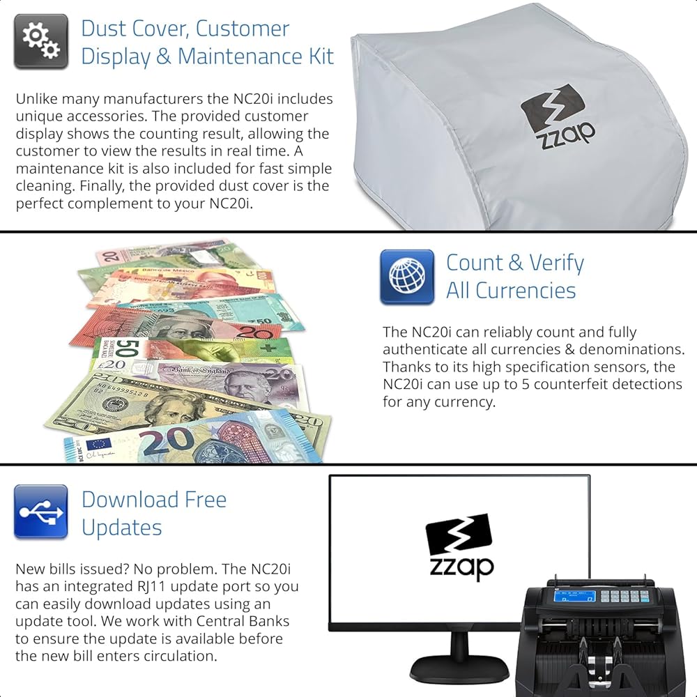 ZZap عداد قيمة الفاتورة وكاشف التزييف - ماكينة صرف العملات النقدية (NC20i)